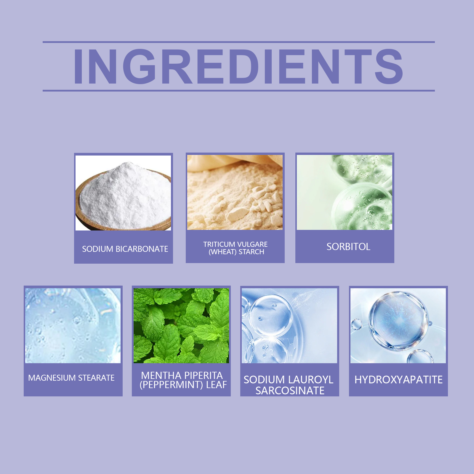 | 成分 | 硬脂酸镁、月桂酰肌氨酸钠、薄荷叶 |