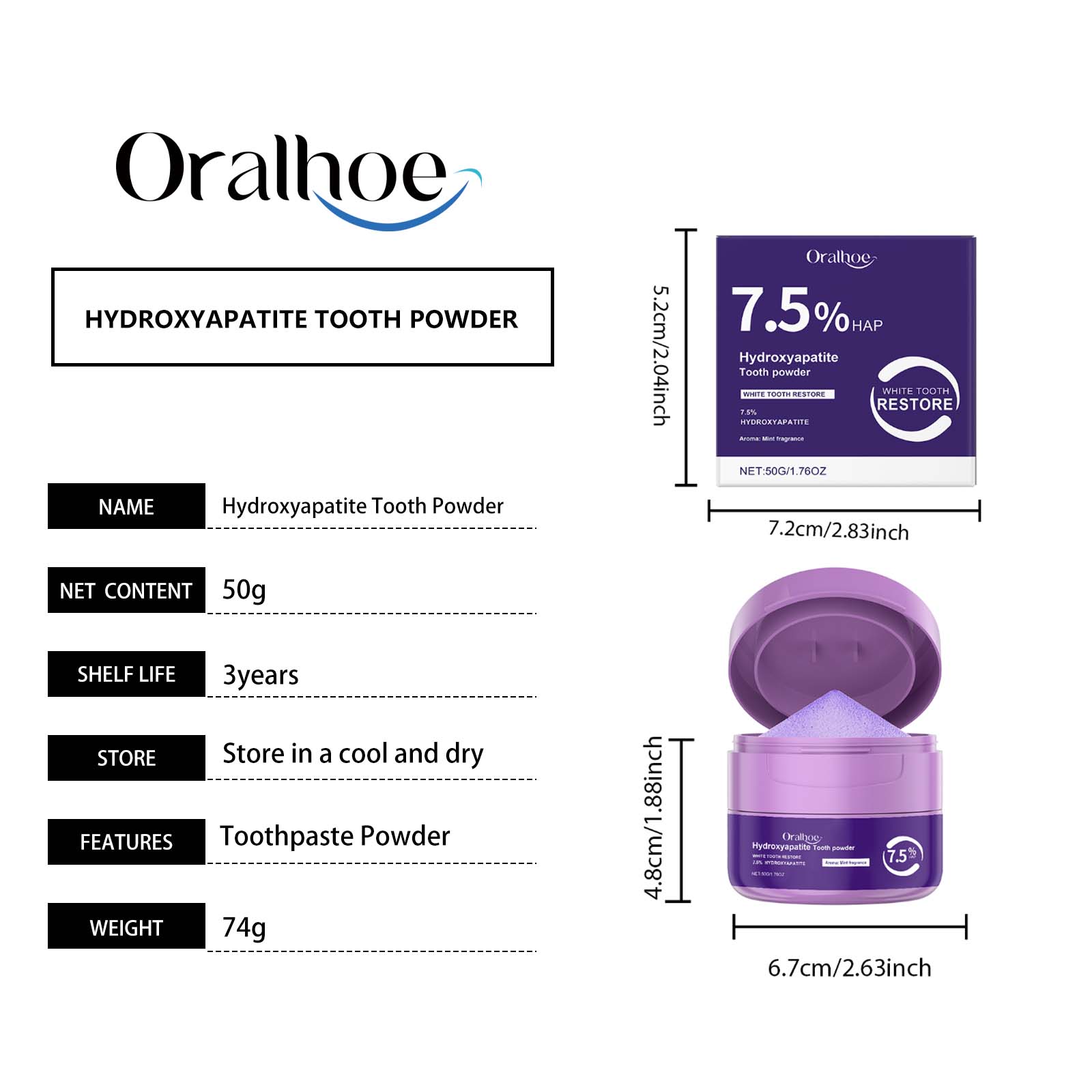 Oralhoe Dental Care Dental Powder, Oral Cleaning Fresh Breath Clean Odor Daily Care For Teeth