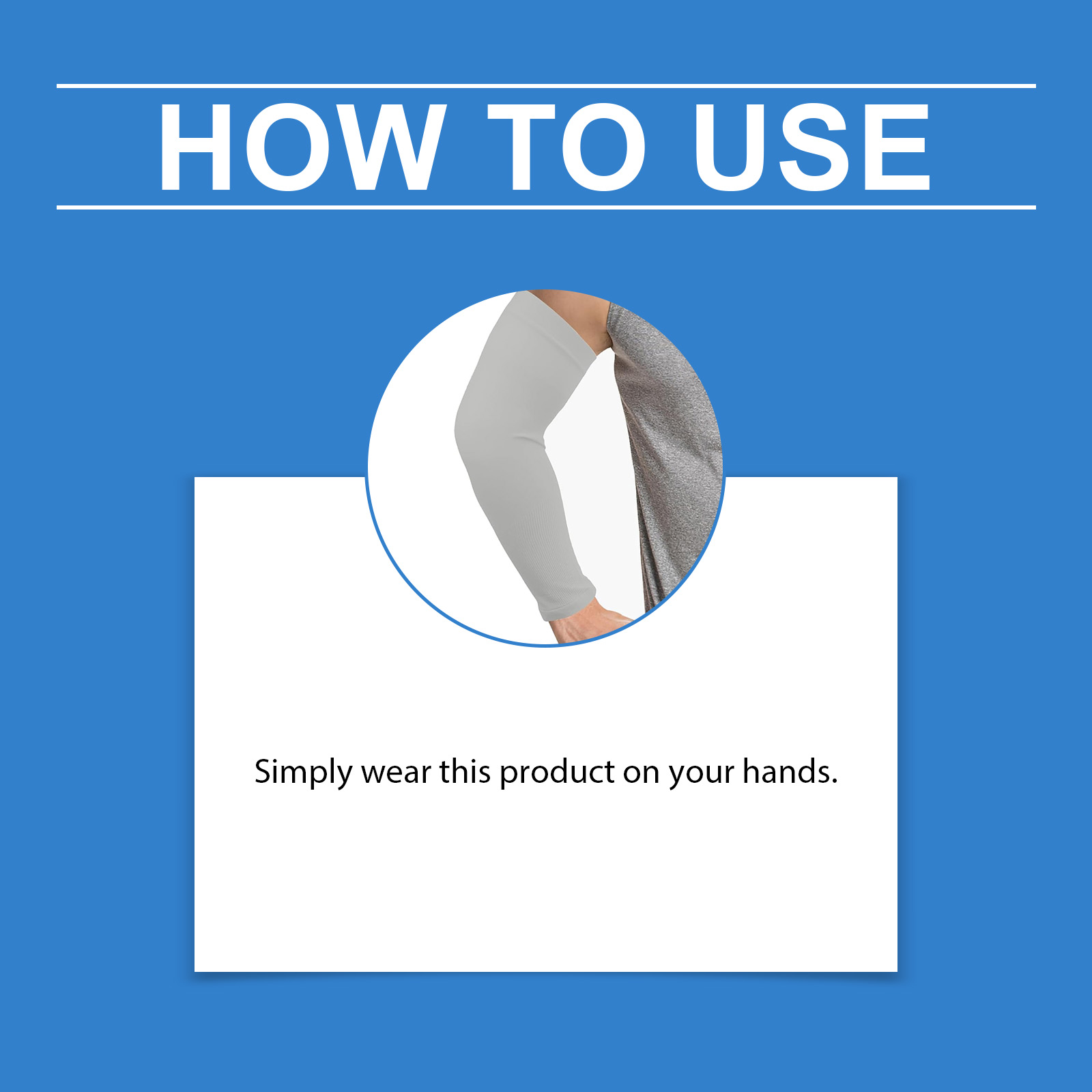 我们的冷却压缩臂套含有锦纶100%。它可以缓解关节和肌肉疼痛,改善血液循环,让你感觉更舒适。它的使用方法很简单:只需将本产品戴在手上。并且采用柔软的布料舒适、轻盈且不紧绷,适合日常穿着,不会影响手臂活动。