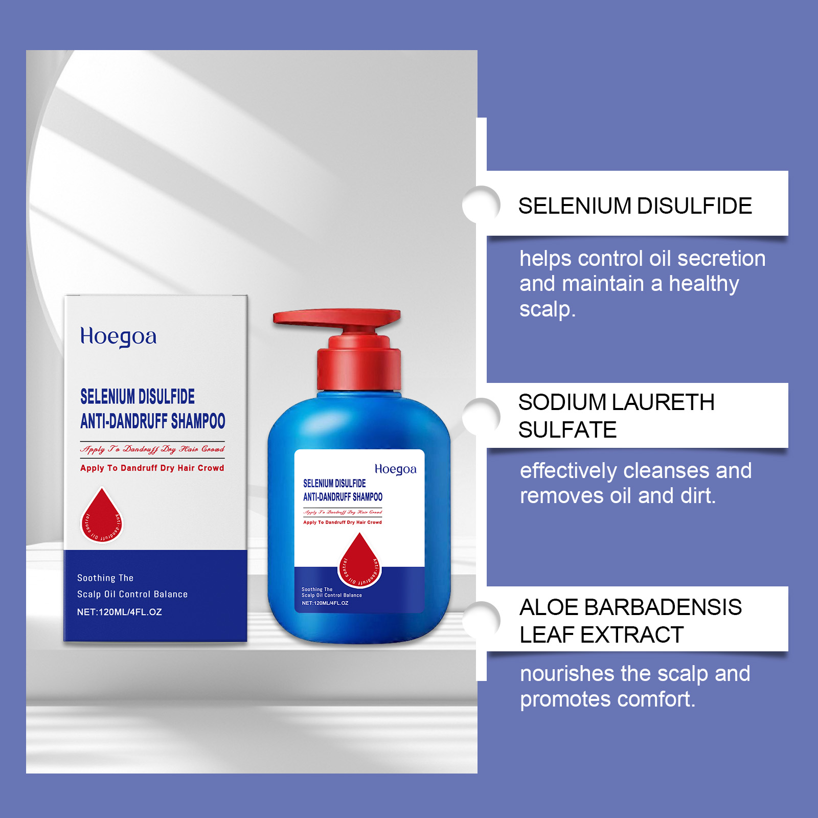 Hoegoa Selenium Disulfide Shampoo, Gently Cleanses Scalp, Nourishes, Softens And Refreshes Hair
