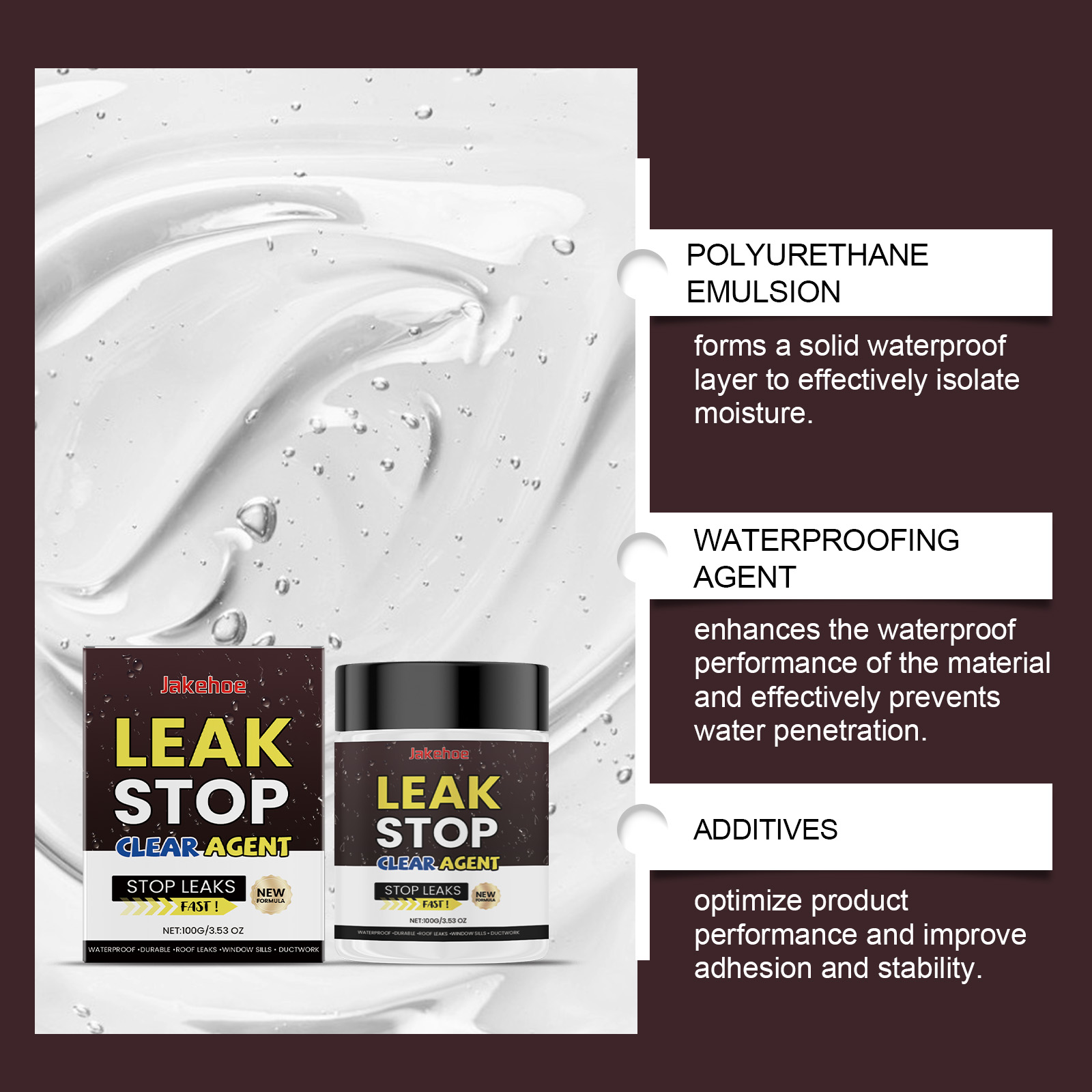 | 成分 | 聚氨酯乳液、防水剂 |