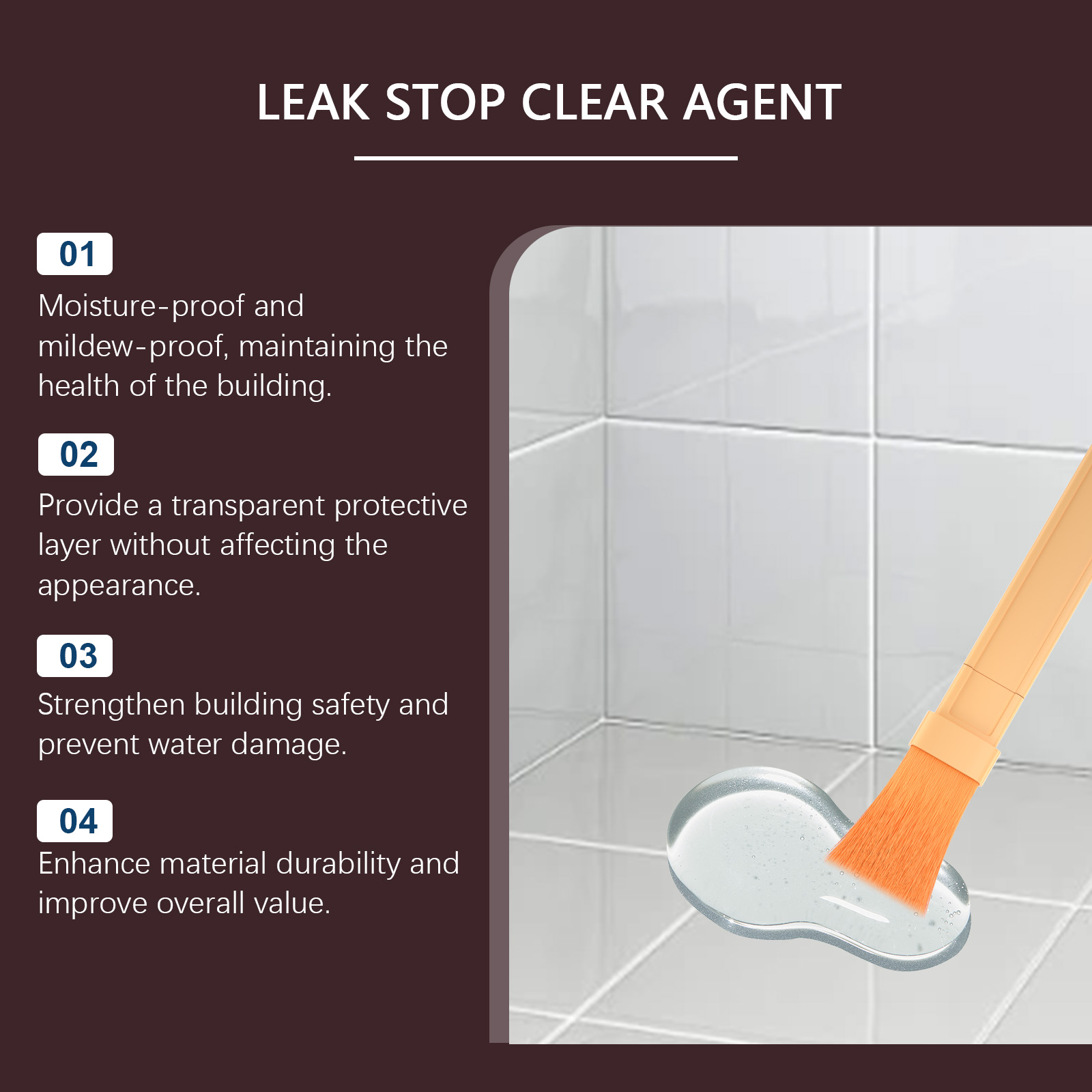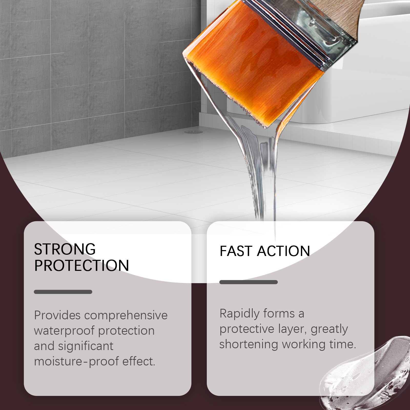 我们的防水密封剂含有聚氨酯乳液、防水剂。它可以提供全面的防水保护和显著的防潮效果。快速形成保护层,大大缩短工作时间。它的使用方法很简单:清洁施工表面,确保表面没有水分。将适量的本品均匀涂抹在施工区域。等待24小时晾干。并且易于使用,自流平配方无缝填充小间隙,易于使用。