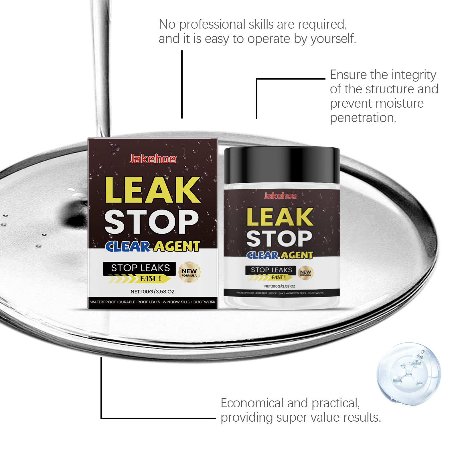 Jakehoe Waterproof Sealant, Bathroom Waterproof Tile Wall Penetration Free Smashing Tile Leak Resistant Wear-Resistant Waterproof Adhesive