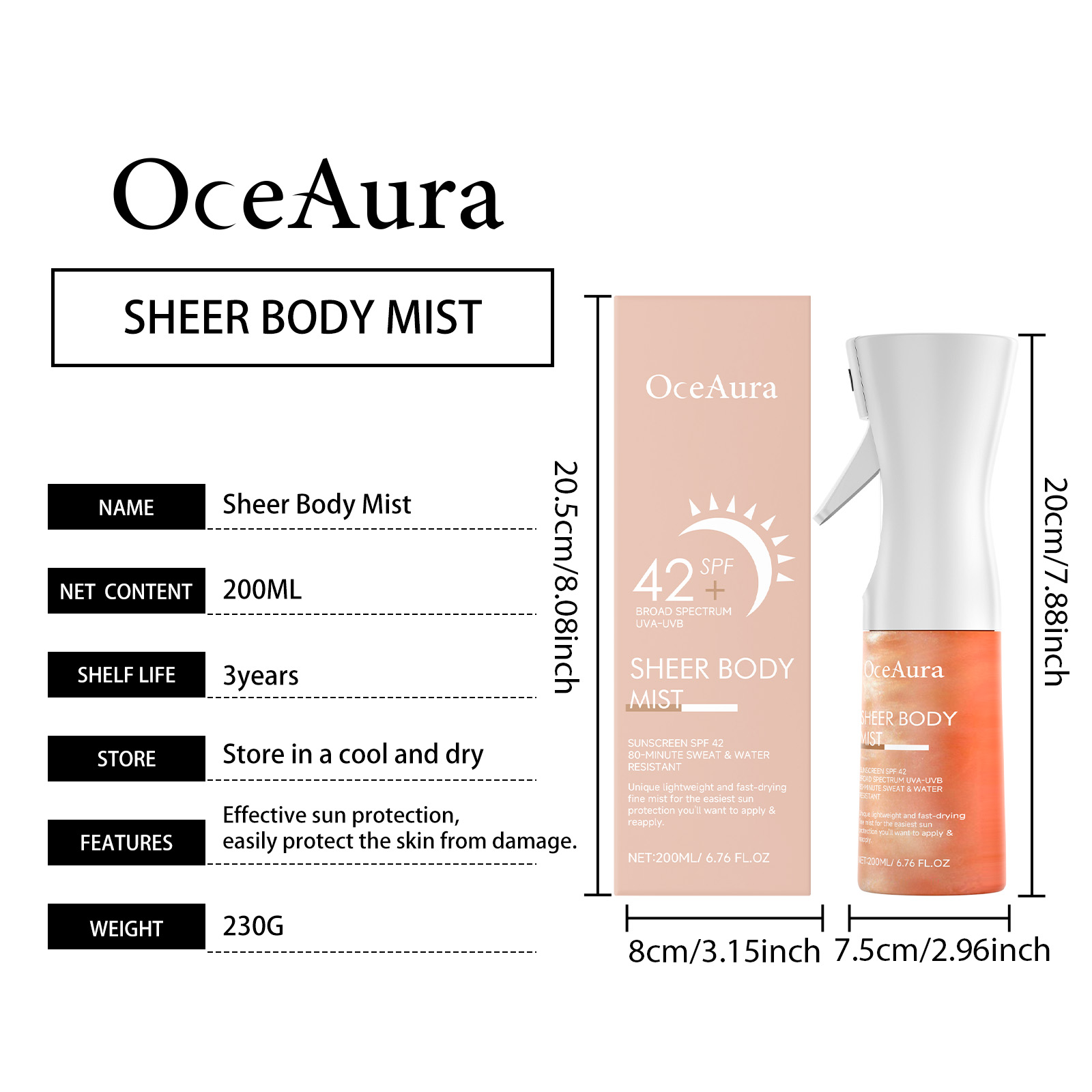 OceAura Body Protection Spray, Moisturizes Summer Outdoor Uv Protection Refreshing Non-Sticky Spray