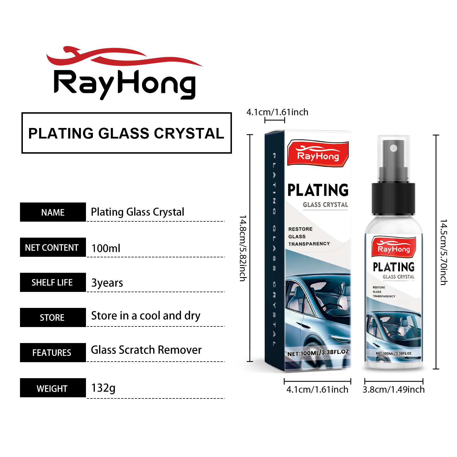 Rayhong Glass Mark Remover, Anti Rain And Anti Sewage Mark Windshield Coating Agent For Car Windows