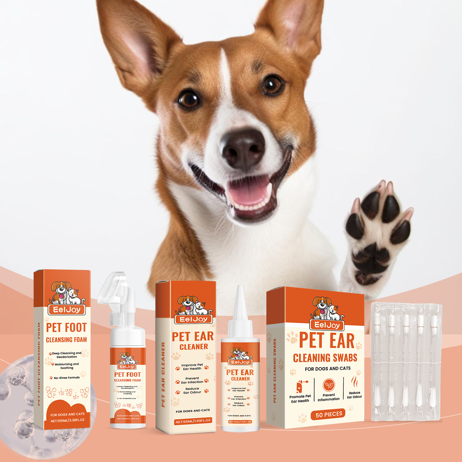 EelJoy Pet Ear Cleaning Cotton Swabs, Cat Dog Feet Ear Gentle Cleaning Earwax Claw Pad Deodorizing