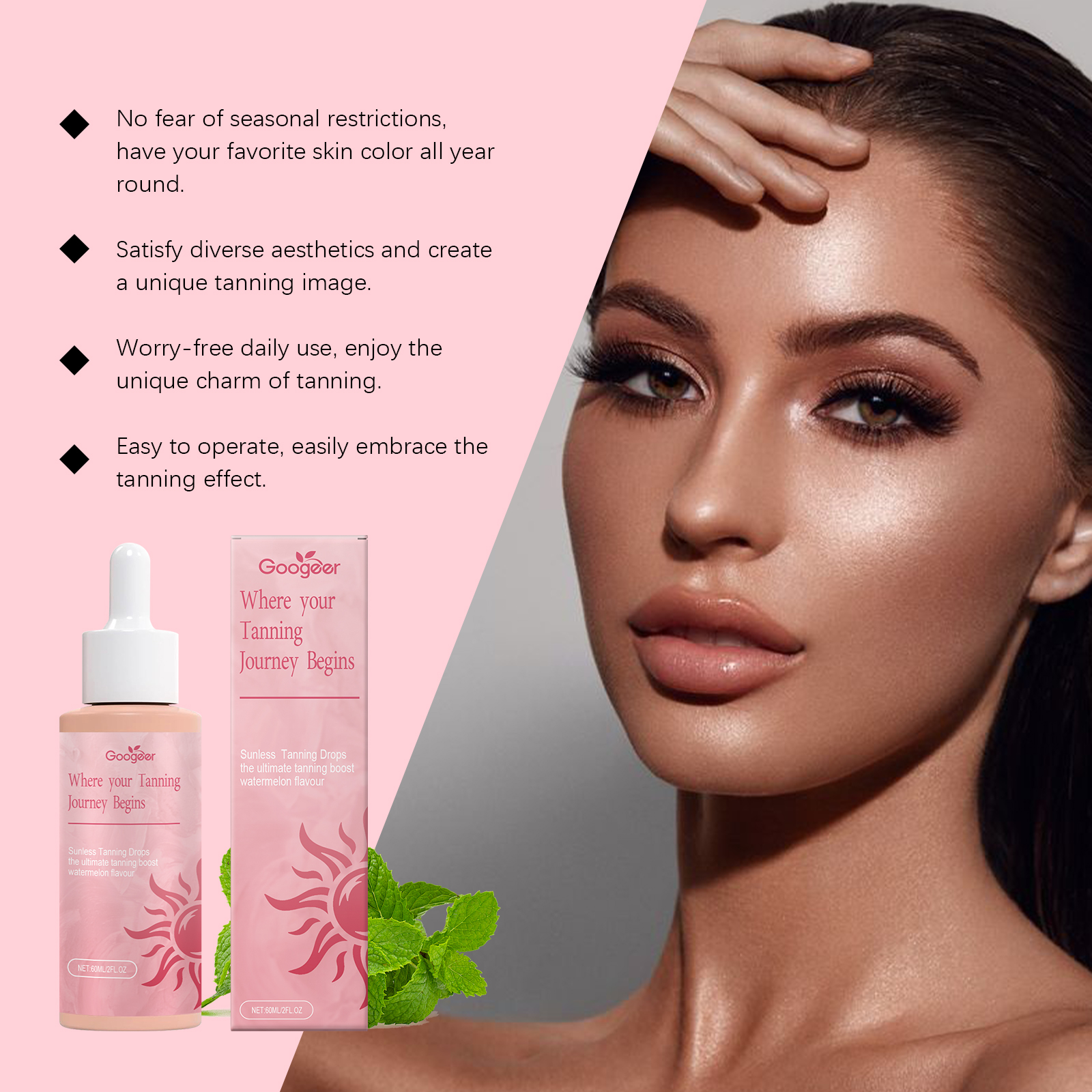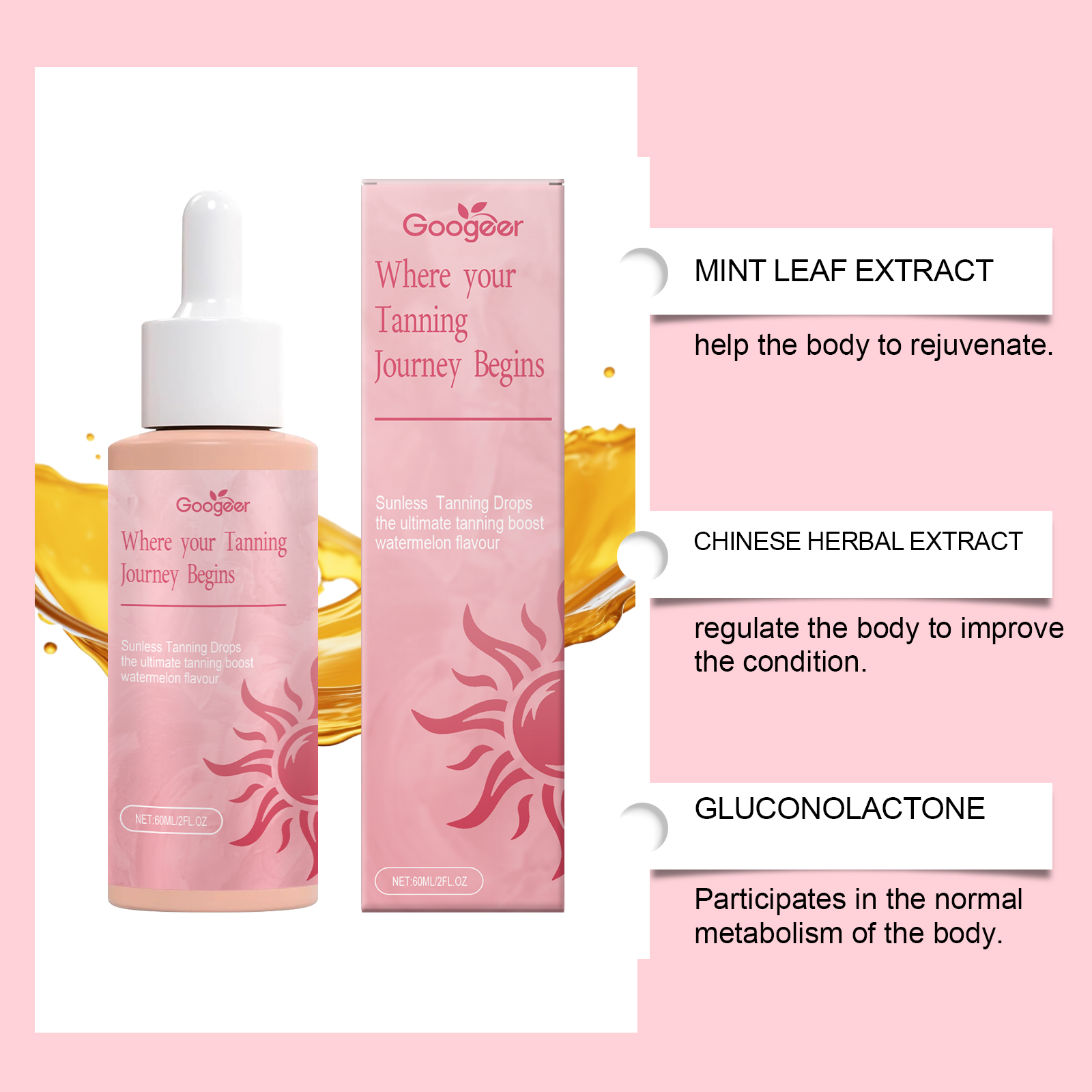 我们的美黑滴剂含有薄荷叶提取液、中药提取物、葡萄糖酸内脂。它可以适合所有肤质的人使用。日常使用简单易坚持。它的使用方法很简单:请在服用前摇匀每次1-2滴,每天1-2次。并且可以根据需要调整皮肤颜色深度。