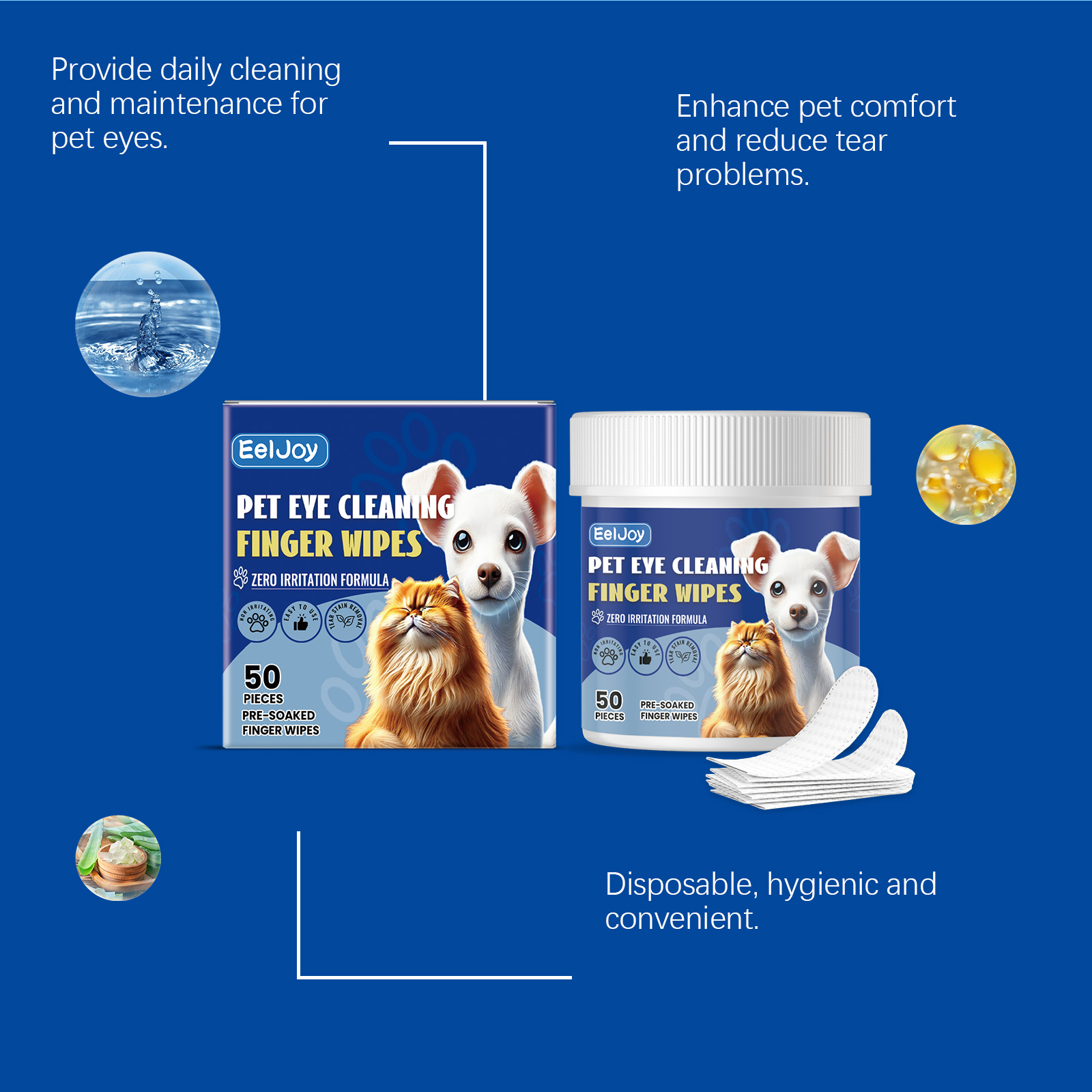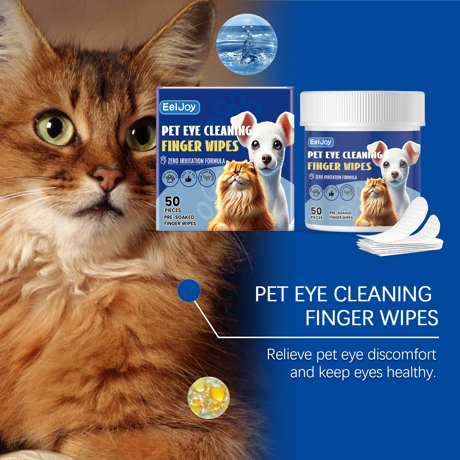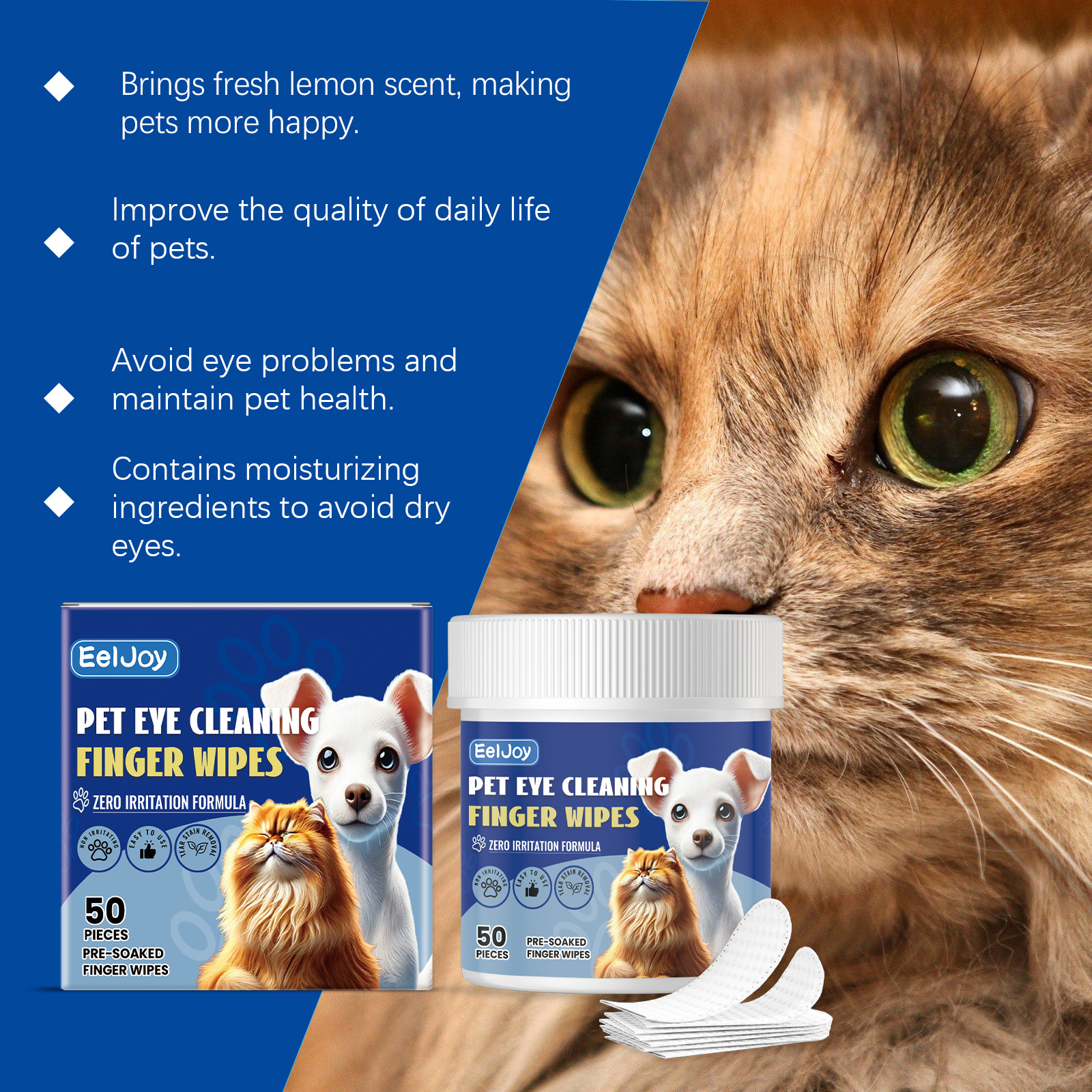 Eeljoy Pet Eye Cleaning Finger Wipes, Tear-Stained Discharge Cleaning Pet Eye Care Wipes