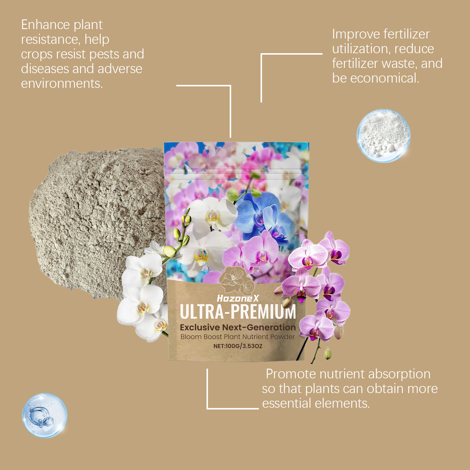 HozoneX Plant Nutrition Powder, Flowers Plant Growth Nutrient Fertilizer Supplement Soil Nutrient Horticultural Care
