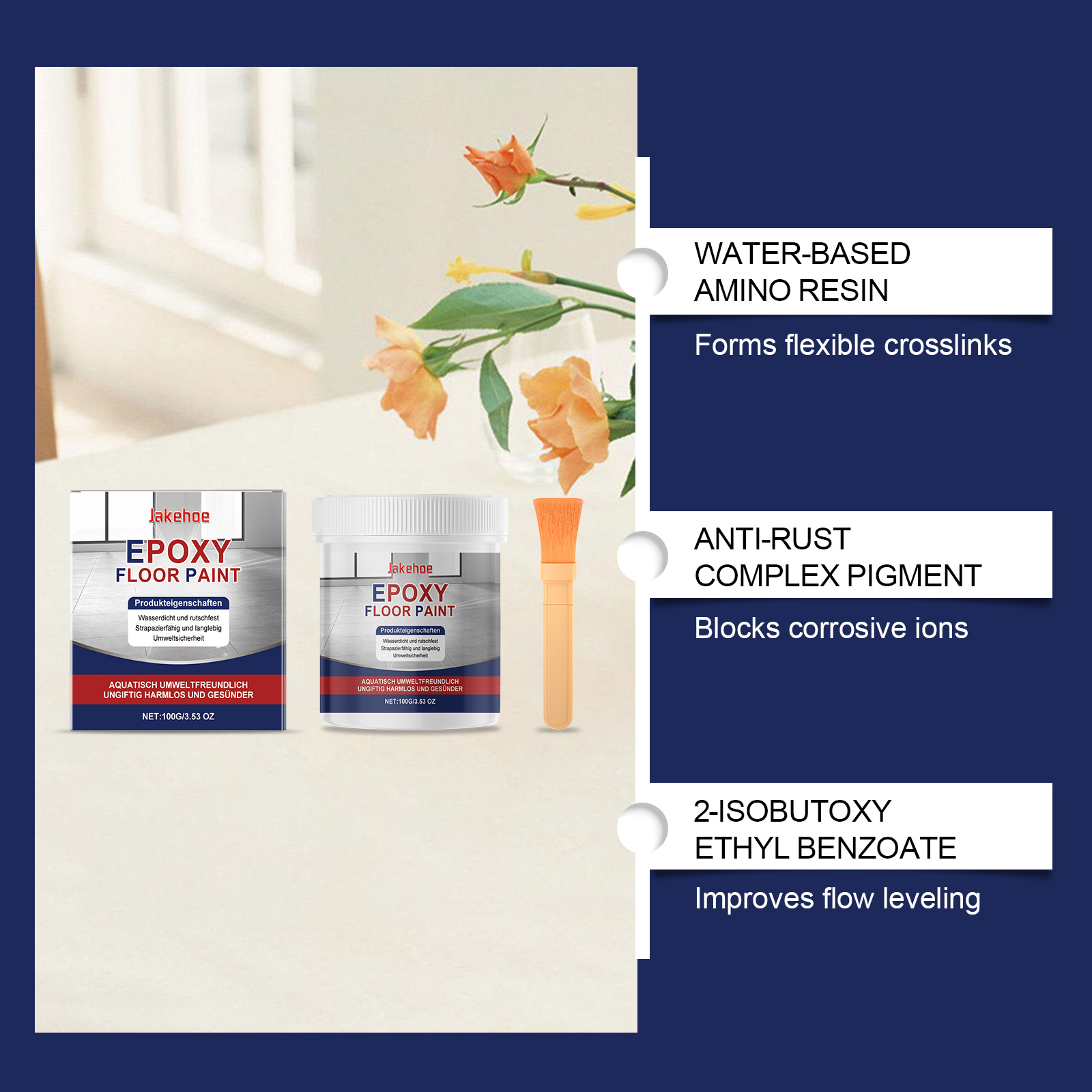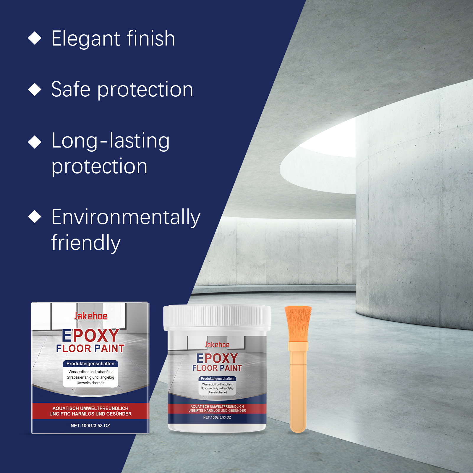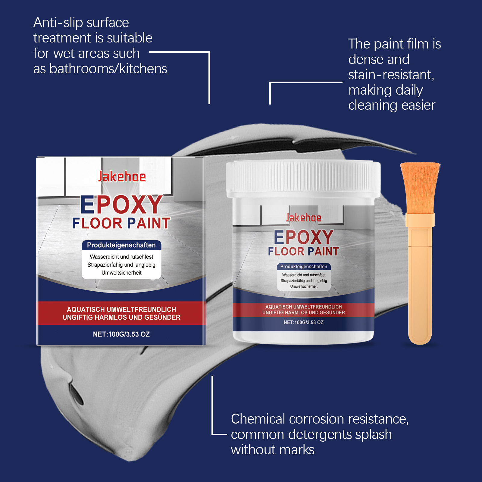 Jakehoe Gray Water-Based Epoxy Floor Primer, Marbled High Gloss Surface Scratch Reconditioning Primer