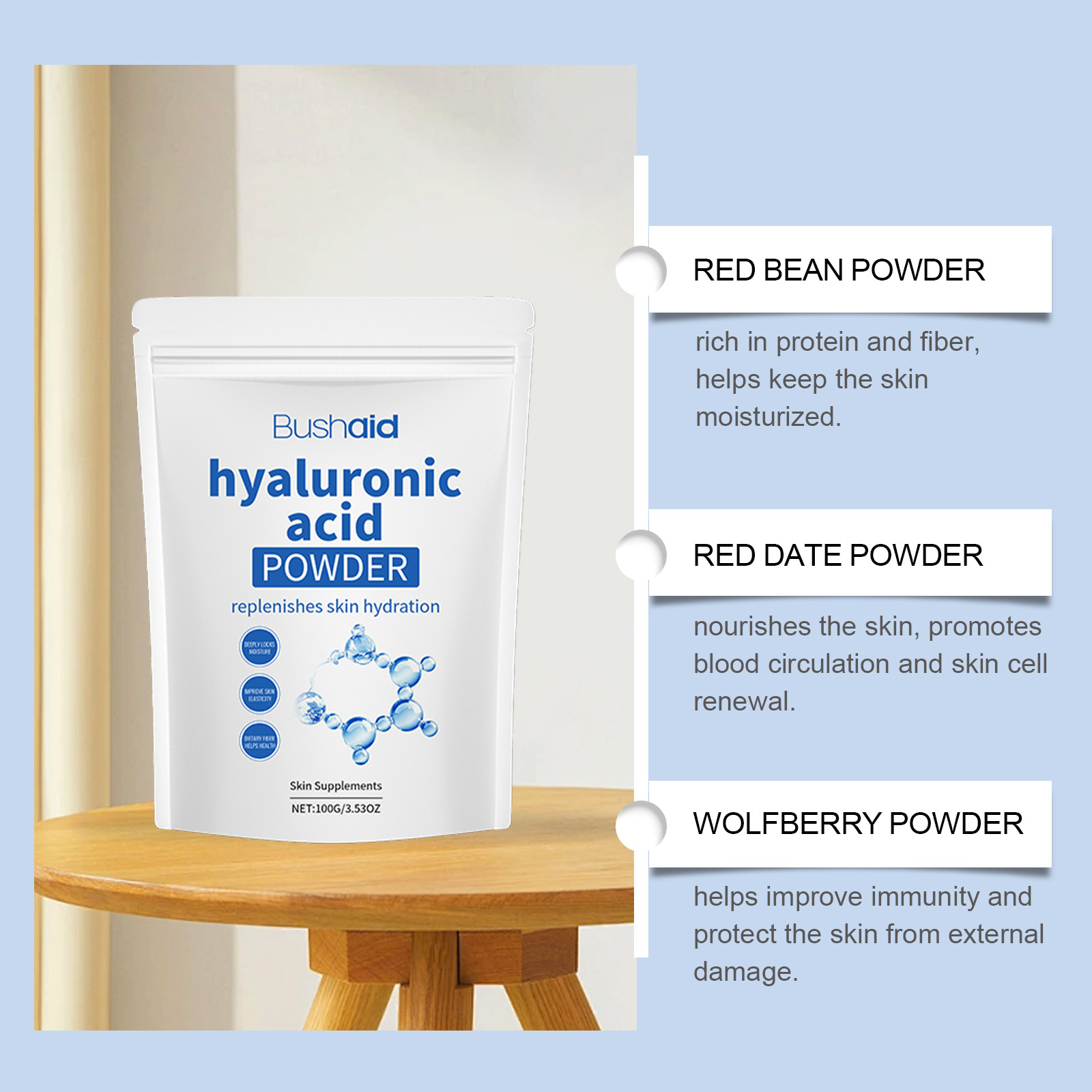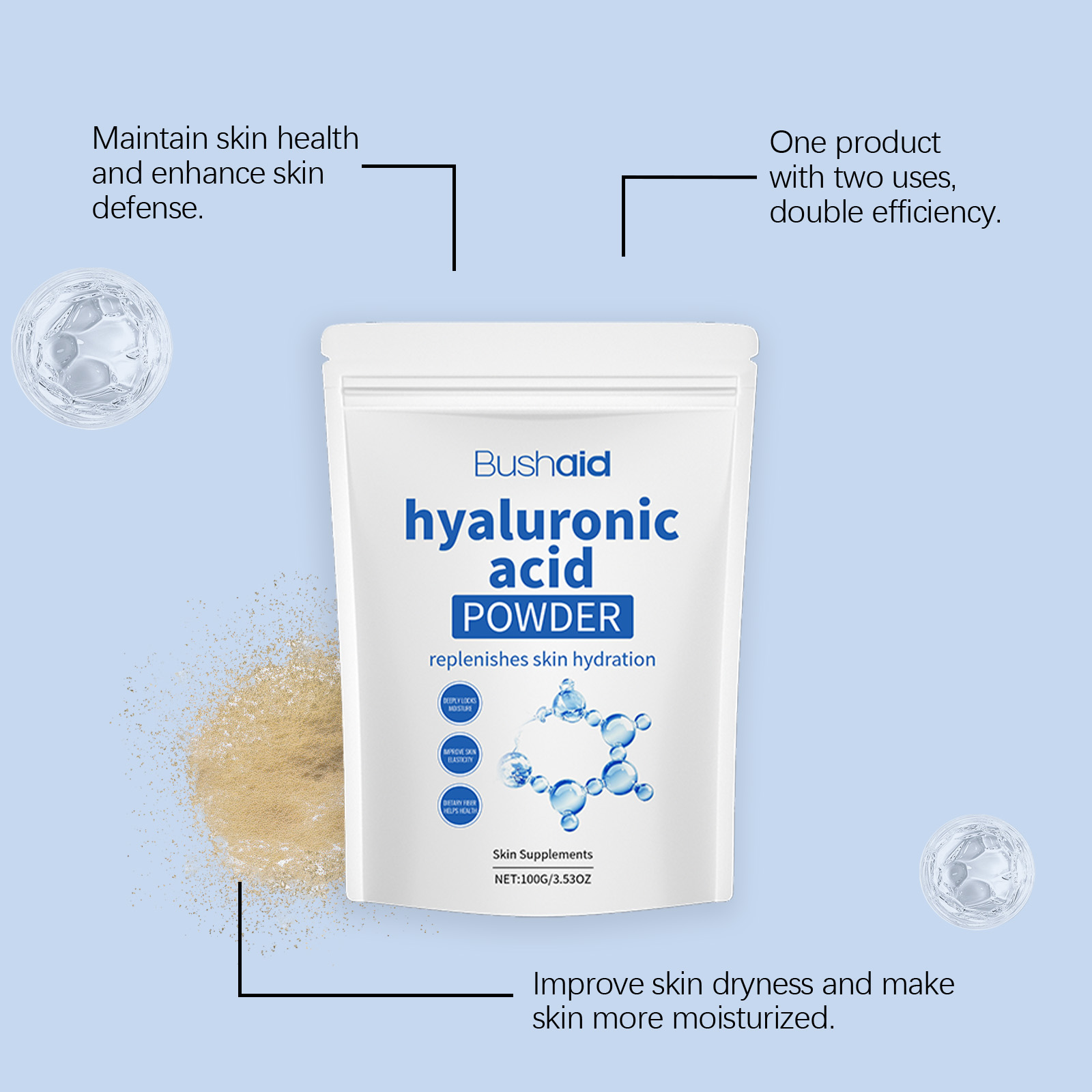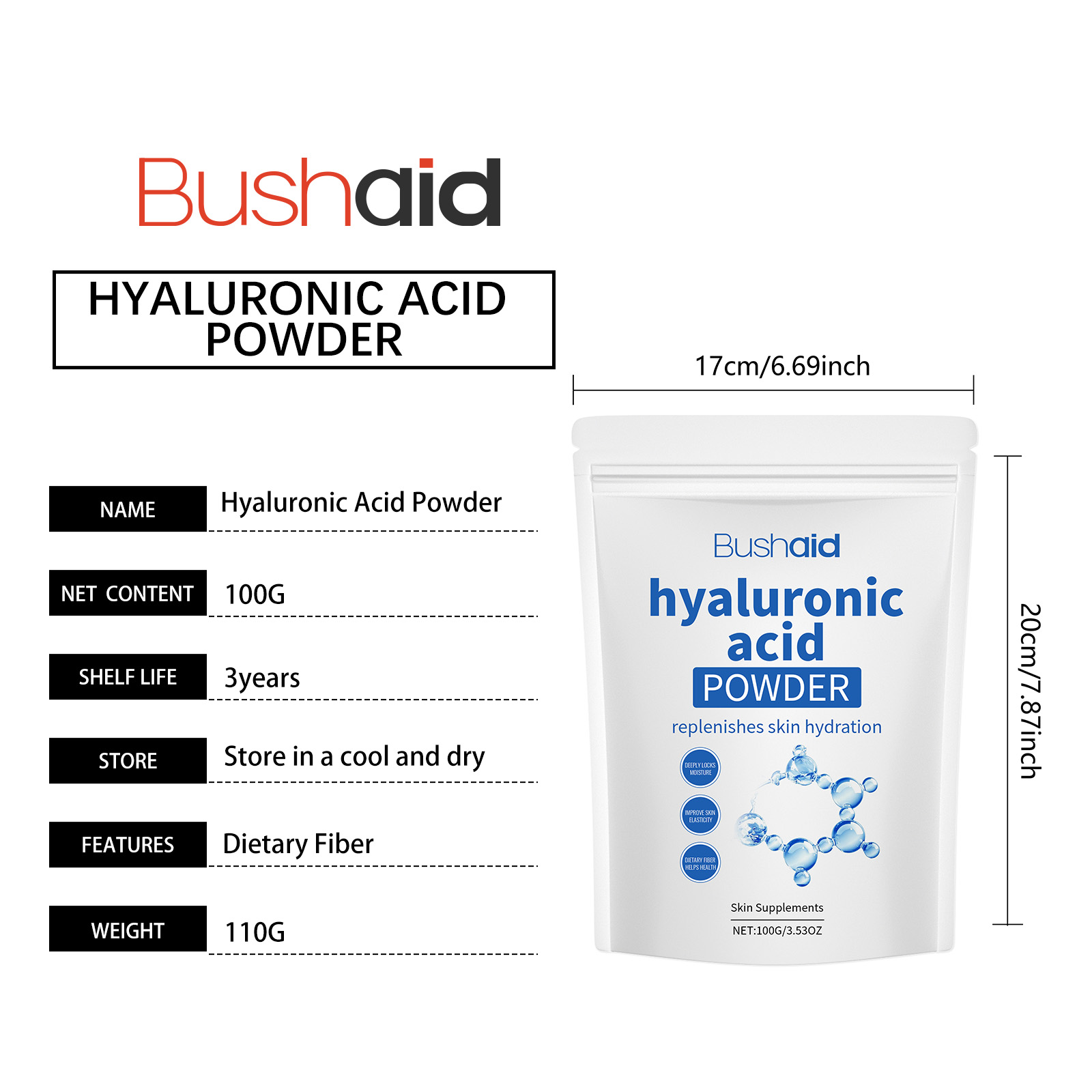 BushAid Hyaluronic Acid Protein Powder For Body Treatment