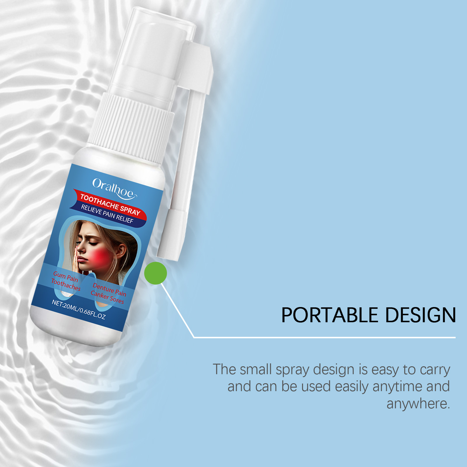 我们的牙龈舒缓喷雾,由洋甘菊提取物、薄荷油、茶树油精心调配而成。专为快速缓解牙龈疼痛,带来舒适体验设计。使用方法极为便捷:使用前请清洁口腔旋开瓶盖,旋转喷嘴对准口腔受影响部位,轻轻按压泵头,准确喷向受影响部位,每次喷2-3次,每天使用3次。并且可以温和地保护口腔健康。