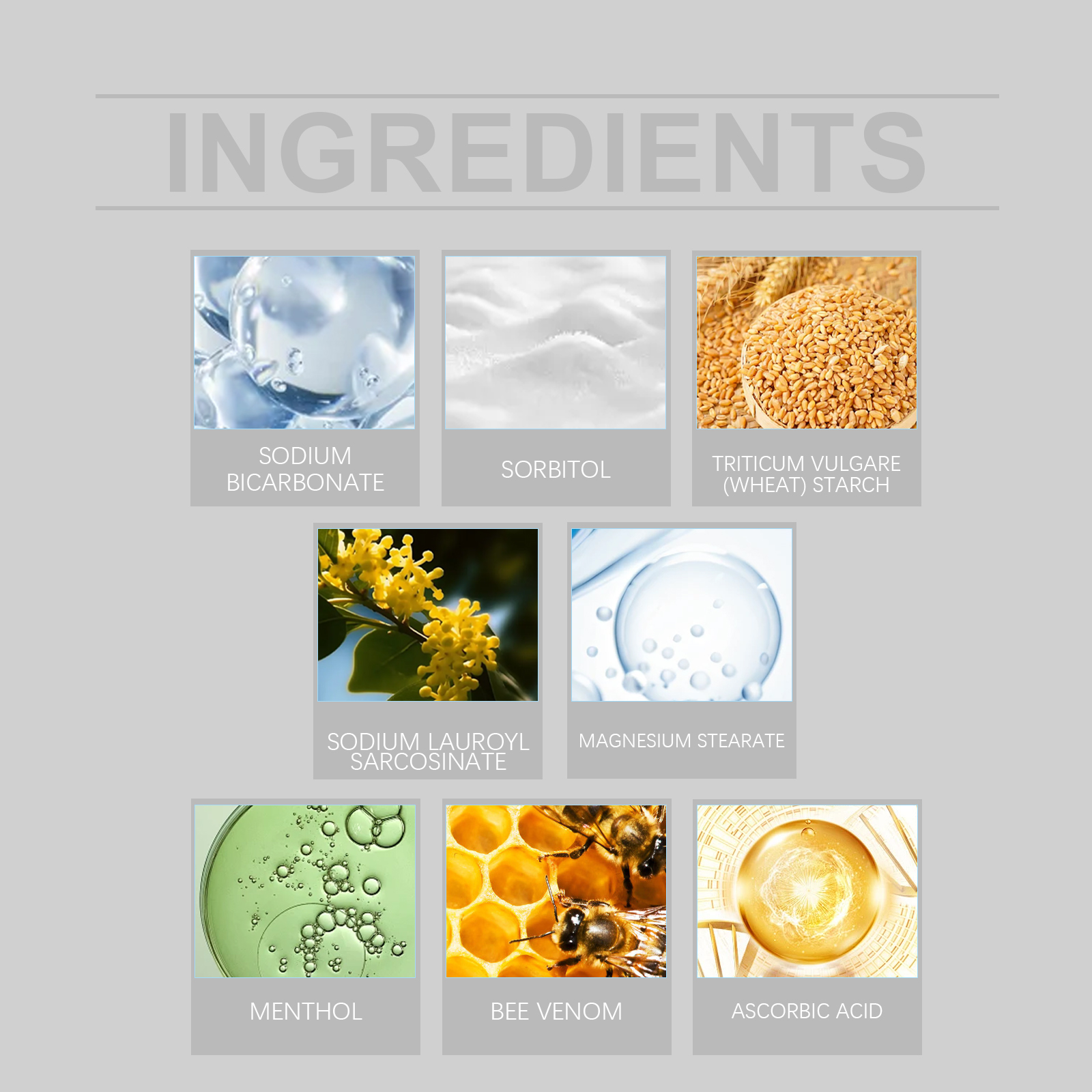 | 成分 | 碳酸氢钠、山梨(糖)醇、小麦淀粉 |