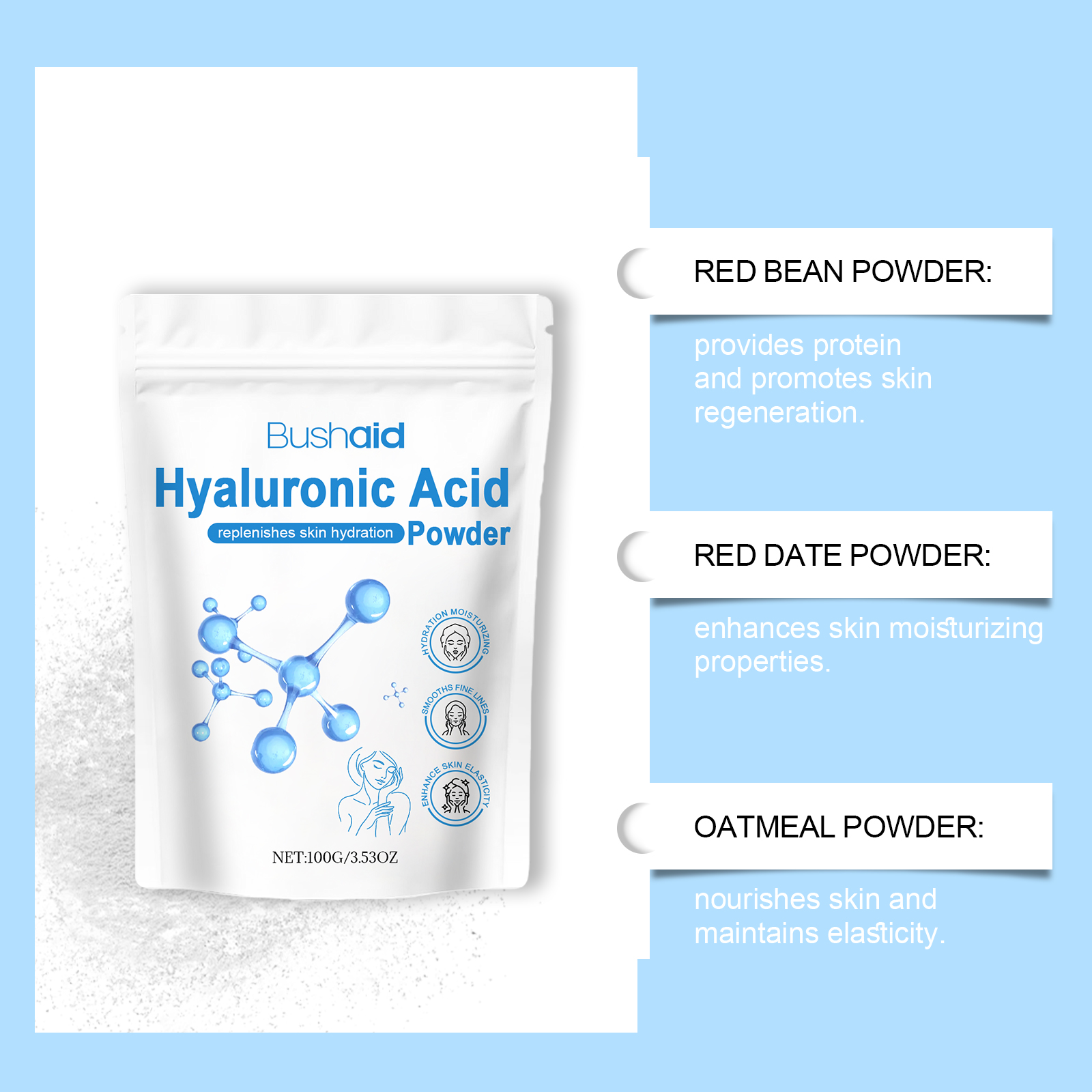 BushAid Hyaluronic Acid Protein Powder For Body Treatment