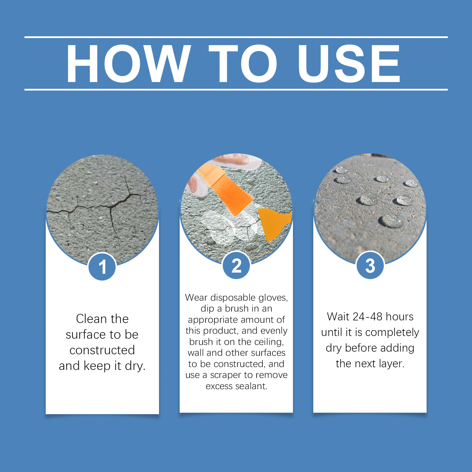 我们的透明防水胶,由防水剂、表面活性剂精心调配而成。专为全面防水密封,创造无忧的防水环境设计。使用方法极为便捷:清洁待建表面并保持干燥。穿戴一次性手套,将刷子浸入适量的该产品中,然后均匀地刷在天花板、墙壁和其他待施工的表面上,并使用刮板去除多余的密封剂。等待24-48小时直到完全干燥,然后再添加下一层。并且可以提高防水胶的柔韧性和可塑性。