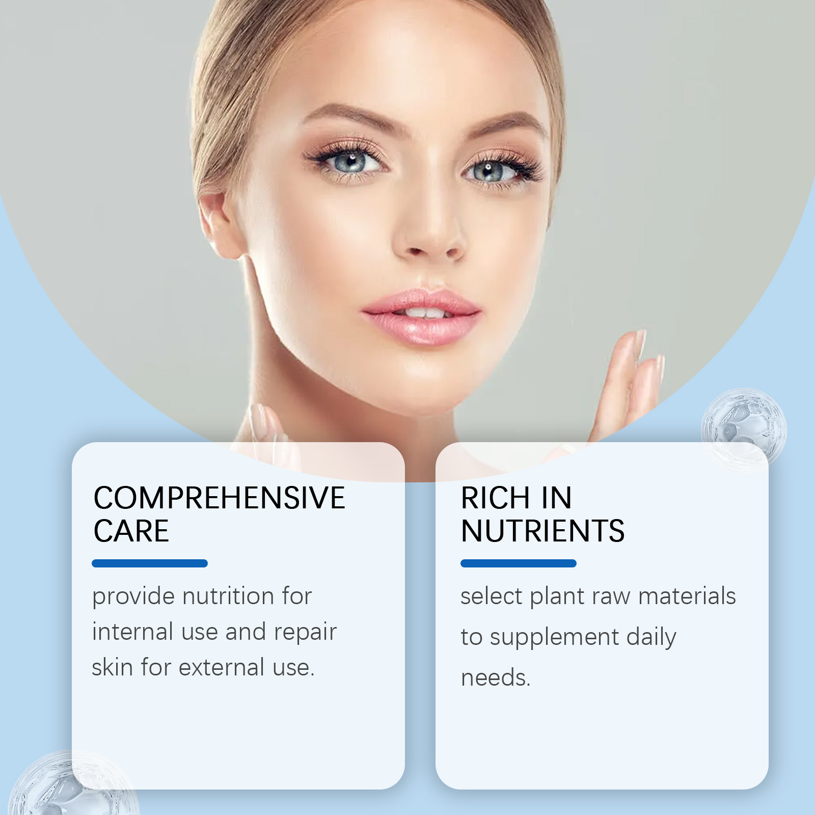 我们的透明质酸蛋白粉,由红豆粉、脱脂乳粉、红枣粉精心调配而成。专为内部使用提供营养,为外部使用修复皮肤设计。使用方法极为便捷:取适量本品,用温水调匀。搅拌直至完全溶解。每天喝一次,或者冷藏直到凝固,然后涂抹在皮肤上。并且可以选择植物原料,来补充日常需求。