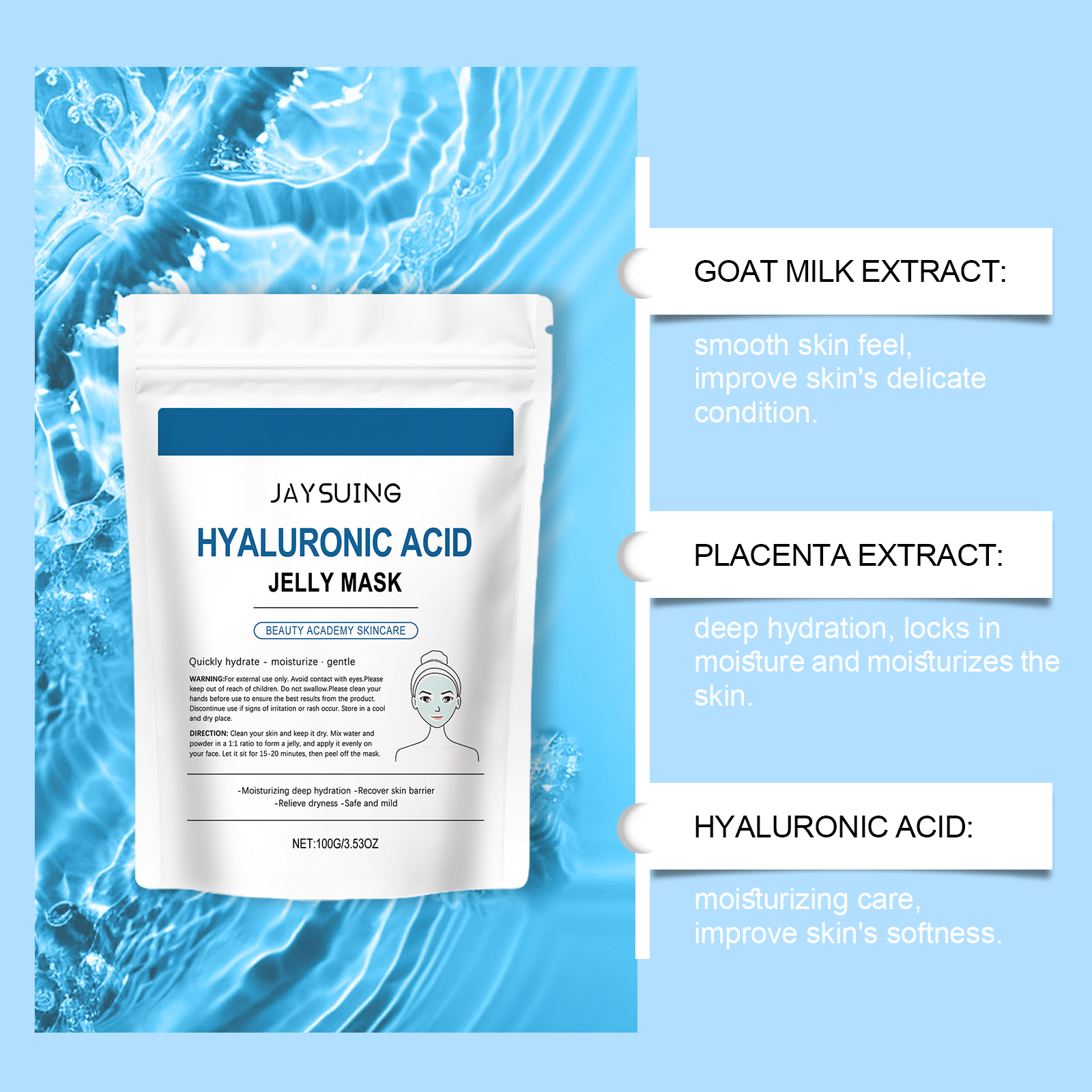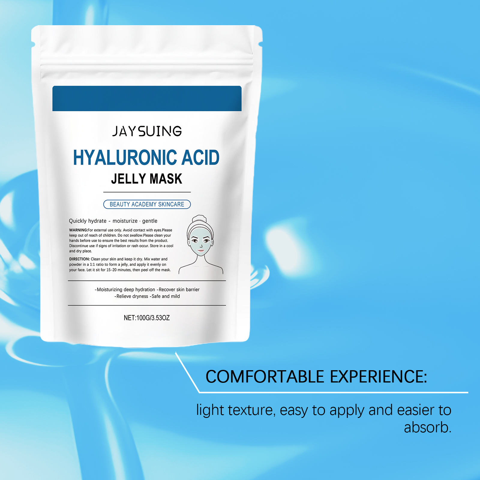 我们的透明质酸保湿涂抹面膜,由玉米淀粉、麦芽糊精、海藻酸钠精心调配而成。专为补充水分,使皮肤保持滋润和光滑设计。使用方法极为便捷:清洁你的皮肤并保持干燥。将水和粉末以1:1的比例混合,然后将其涂抹在脸上。保持15-20分钟,然后取下面膜。并且它可以带来持久保湿,展现滋润柔嫩的光彩。改善干燥,赋予肌肤柔嫩质感。涂抹顺滑,肌肤感觉柔软、细腻、有光泽。