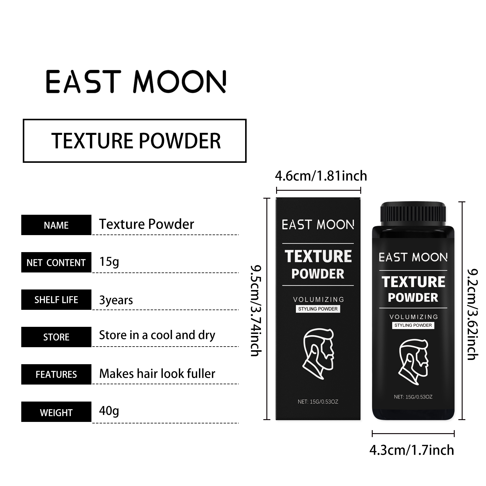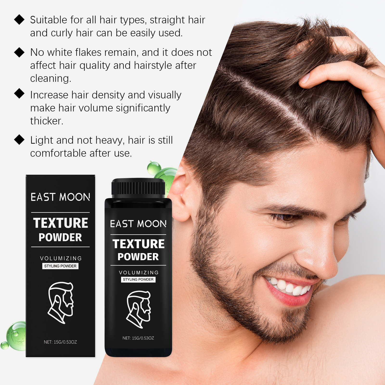 East Moon Men's Styling Volumizing Powder, Fluffy Hair Quality Control Oil Refreshing Hair Care Styling Hair Texture Powder