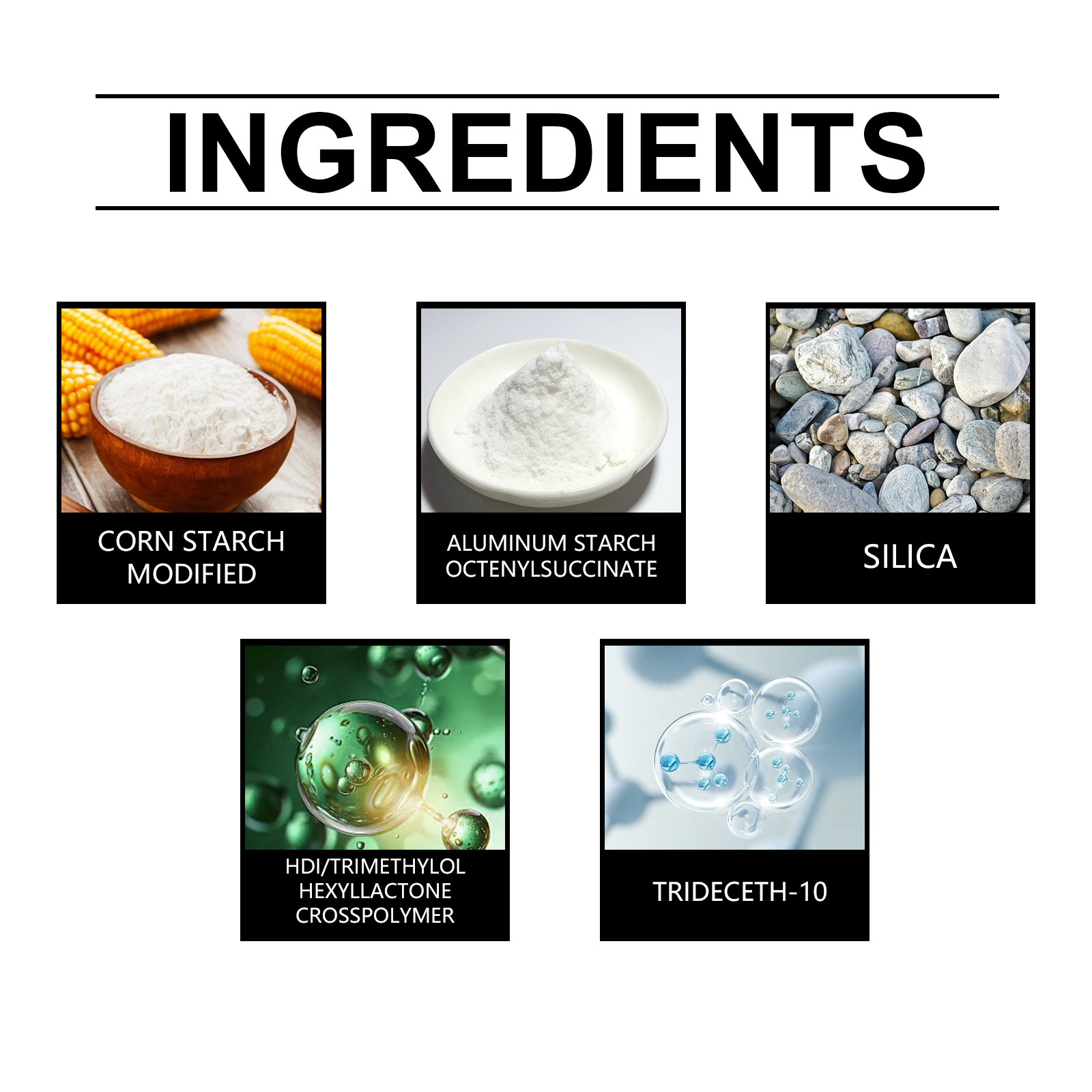 | 成分 | 改性玉米淀粉、淀粉辛烯基琥珀酸铝 |