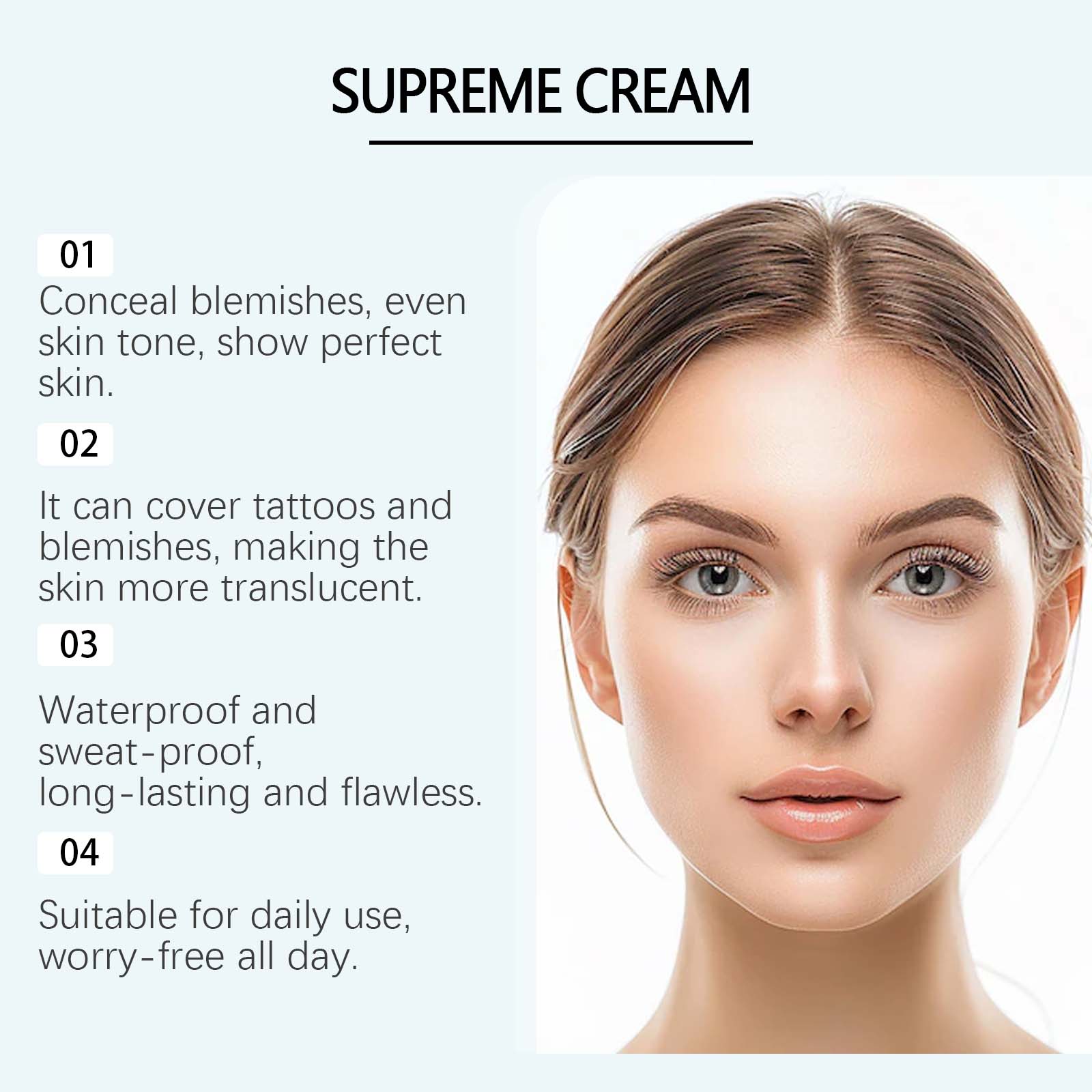 我们的象牙色持久遮瑕霜,由生育酚(维生素E)、山金车花提取物精心调配而成。专为覆盖面部和身体,轻松打造均匀肤色设计。使用方法极为便捷:对于面部:单独使用或在皮肤护理后使用。用手、海绵或刷子涂抹产品。随着时间的推移,可以用于遮盖瑕疵。对于身体:彻底清洁并干燥你的身体。用手或身体刷子涂抹产品。等待5分钟让它干燥。并且采用轻质配方,自然妆容无厚重感,易于遮盖瑕疵。