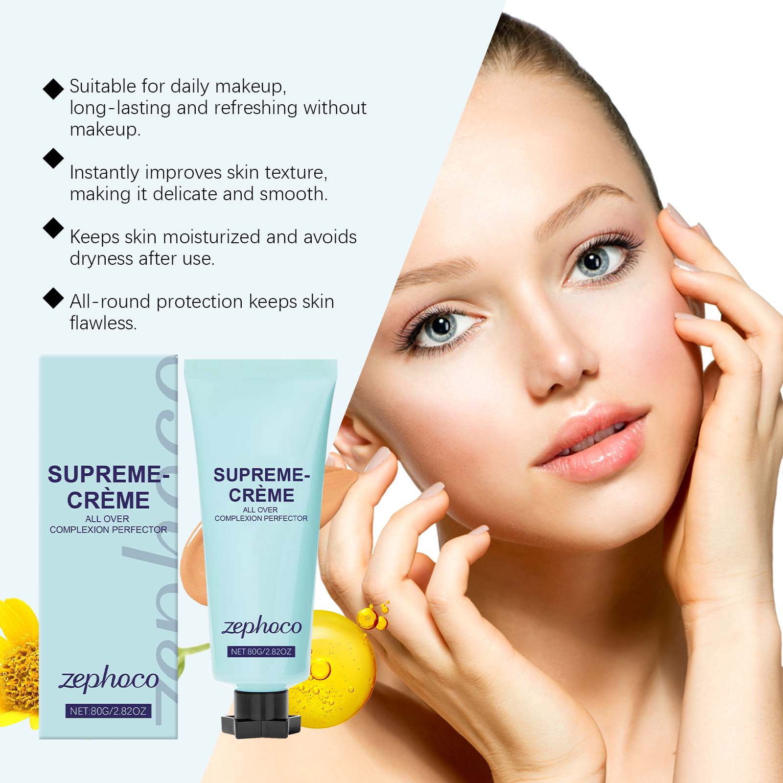 我们的中肤色持久遮瑕霜,由生育酚(维生素E)、山金车花提取物精心调配而成。专为覆盖面部和身体,轻松打造均匀肤色设计。使用方法极为便捷:对于面部:单独使用或在皮肤护理后使用。用手、海绵或刷子涂抹产品。随着时间的推移,可以用于遮盖瑕疵。对于身体:彻底清洁并干燥你的身体。用手或身体刷子涂抹产品。等待5分钟让它干燥。并且采用轻质配方,自然妆容无厚重感,易于遮盖瑕疵。