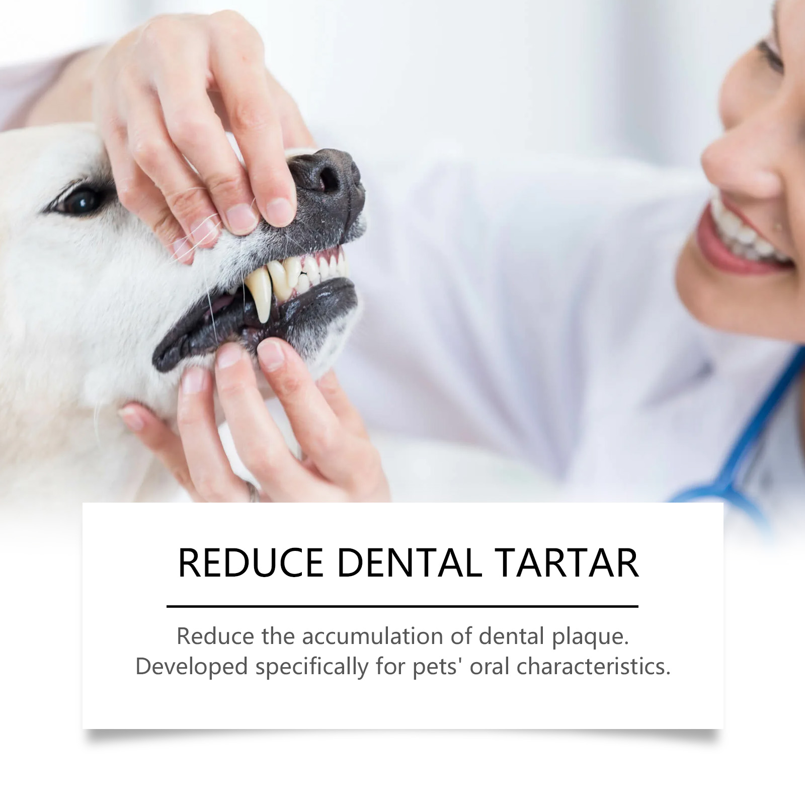 我们的宠物牙齿清洁粉,由碳酸氢钠、山梨(糖)醇、小麦淀粉精心调配而成。专为宠物保持牙齿和牙龈健康设计。使用方法极为便捷:将牙刷弄湿,然后将其浸入牙膏中,轻柔地刷2-3分钟,用清水冲洗口腔。并且可以去除宠物吃饭后的口臭。