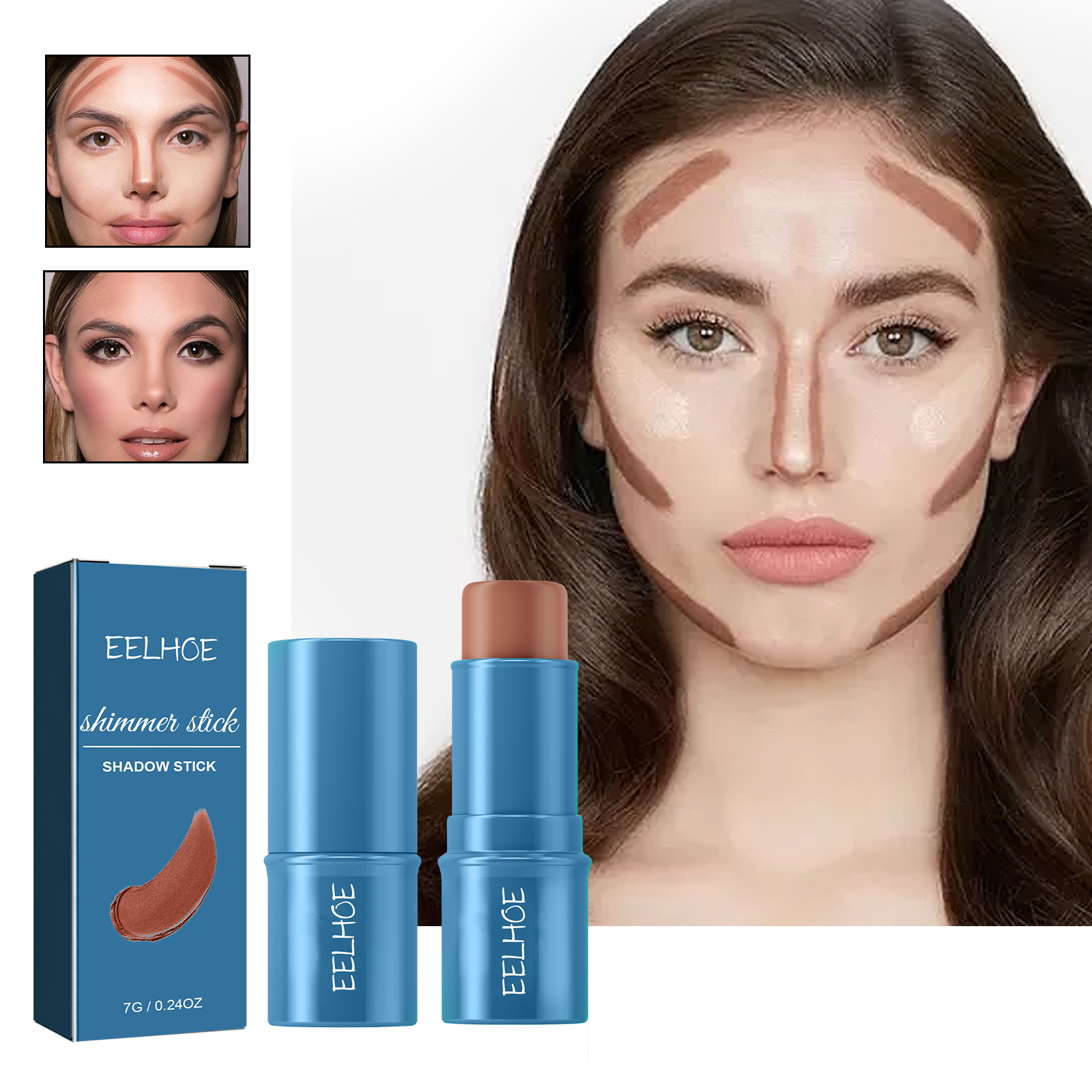 EELHOE Shadow Stick, Three-Dimensional Brightening Natural Waterproof Lightweight Lazy Body Contouring Cream