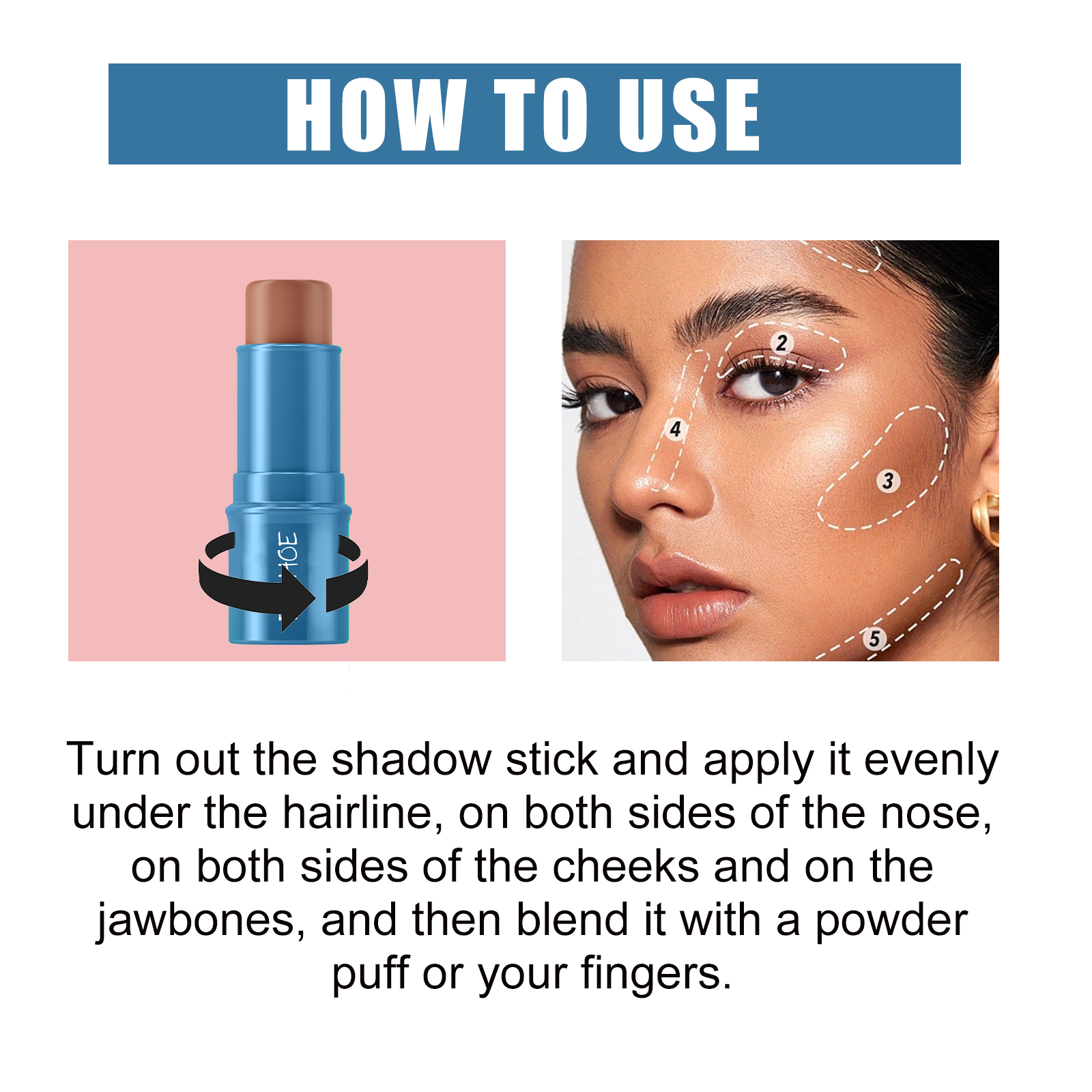 我们的阴影棒含有矿油、聚二甲基硅氧烷、微晶蜡。它可以修饰脸型、加深轮廓的特点,使你的妆容更加精致,轻松打造高鼻梁、清晰的下领线,让你的五官更加深邃立体。它的使用方法很简单:将产品翻出来,均匀涂抹在发际线下、鼻翼两侧脸颊两侧和颚骨上,然后用粉扑或手指将其混合均匀即可。可以在不同的灯光和角度都可以反射和提亮,妆容明暗相间,灵动通透。