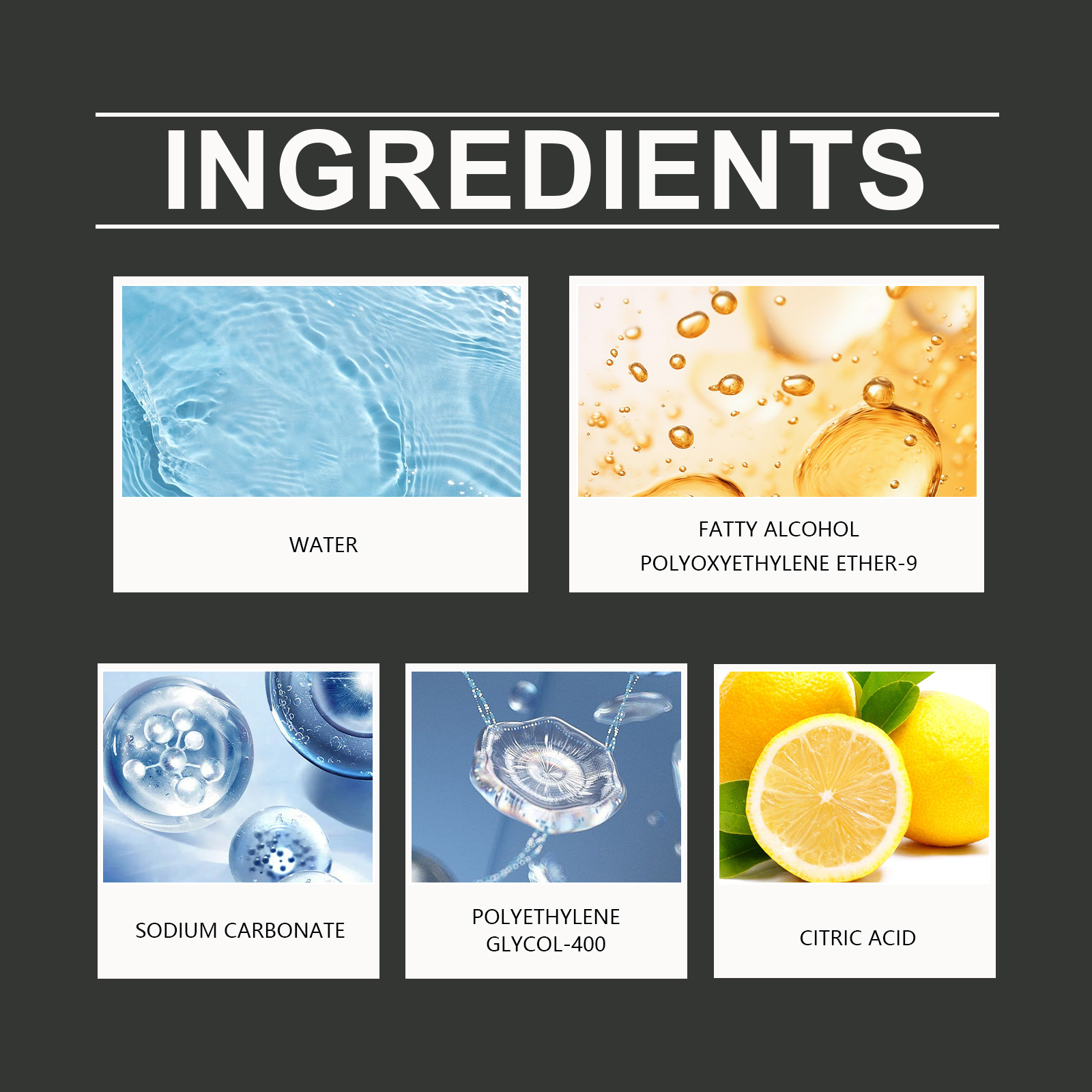 我们的汽车除锈剂,由柠檬酸、葡萄糖酸钠精心调配而成。专为溶解金属锈层,有效去除顽固的锈斑设计。使用方法极为便捷:使用前摇动瓶子,然后将喷雾剂喷在锈斑上。均匀覆盖锈斑区域,让其停留3-5分钟。用海绵擦拭,然后用清水彻底冲洗表面。对于严重的锈斑重复操作,直至清洁。并且可以恢复金属表面的光泽,提高整体美感。