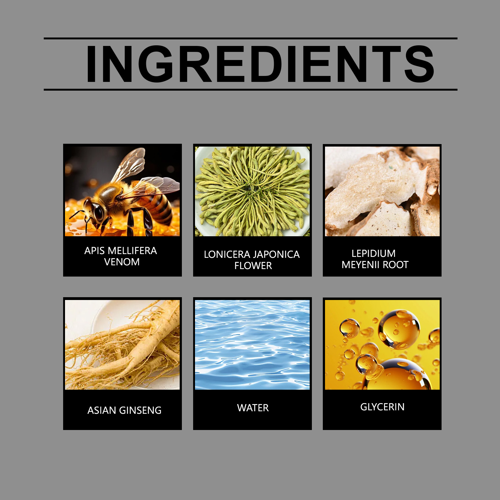 | 成分 | 蜂毒、金银花、玛卡根 |