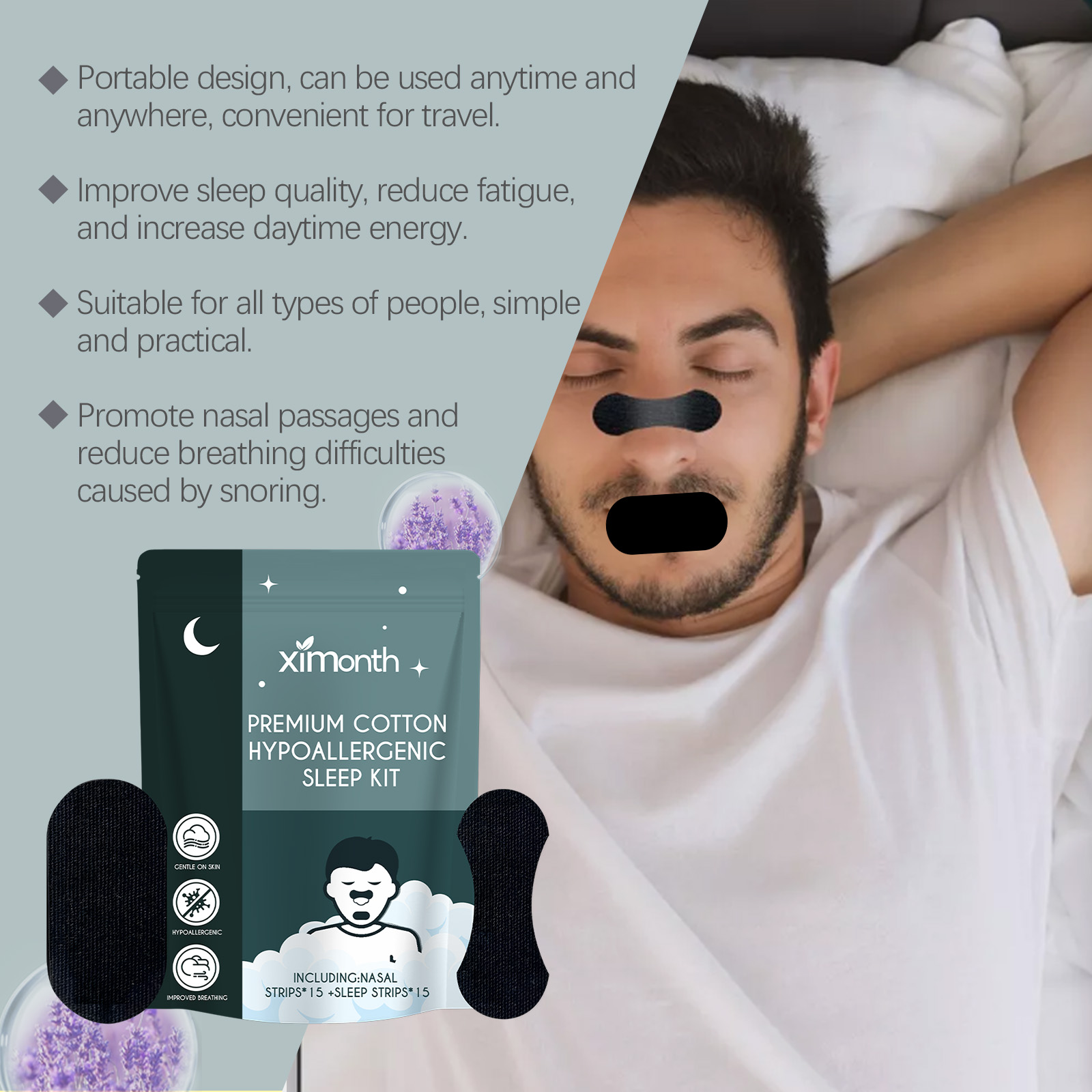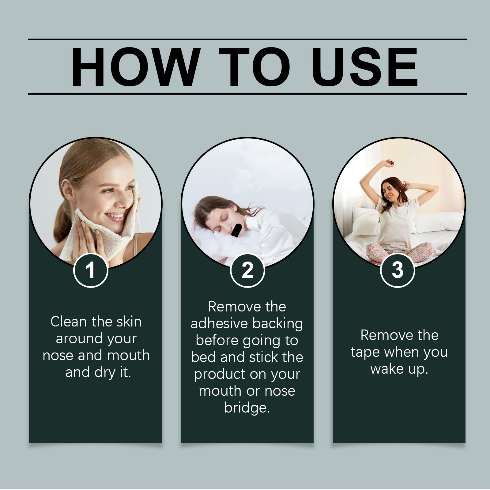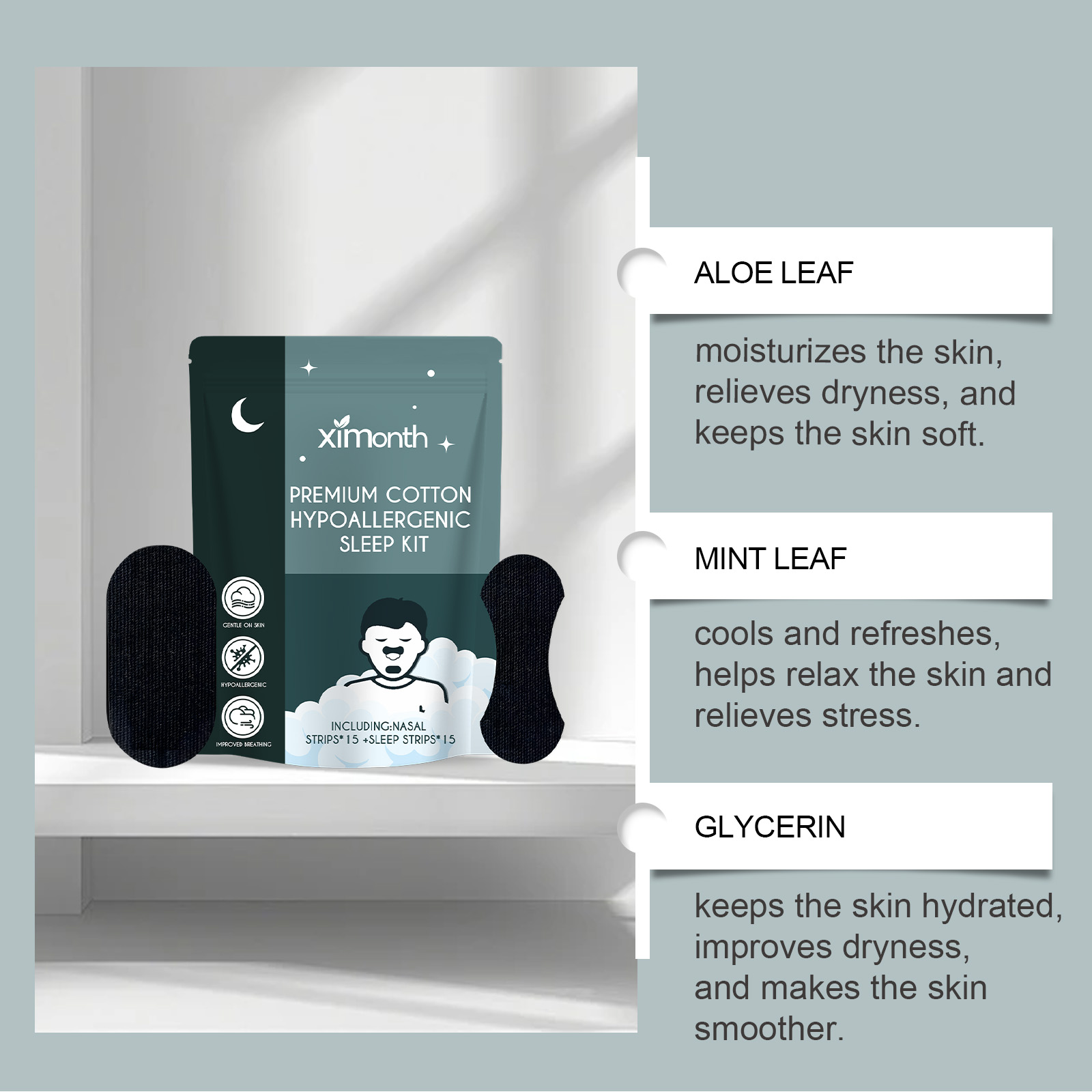 我们的睡眠护理贴,由薰衣草油、薄荷叶、芦荟叶精心调配而成。专为保持口腔湿润,防止夜间口干,提高夜间舒适度设计。使用方法极为便捷:清洁鼻子和嘴巴周围的皮肤并使其干燥。睡觉前取下背胶,将产品贴在嘴唇或鼻梁上,醒来时撕掉胶带。并且可以有效减少打鼾,改善睡眠质量。促进深度睡眠减少夜间醒来的次数,提高整体的休息效果。