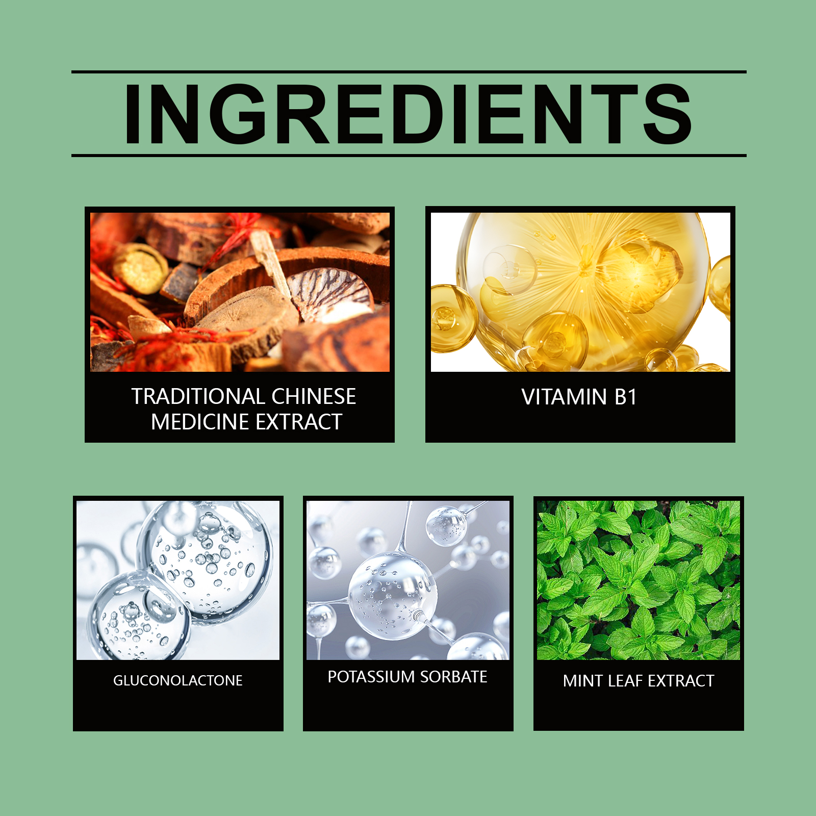 | 成分 | 中药提取物、葡萄糖酸内脂、维生素b1 |