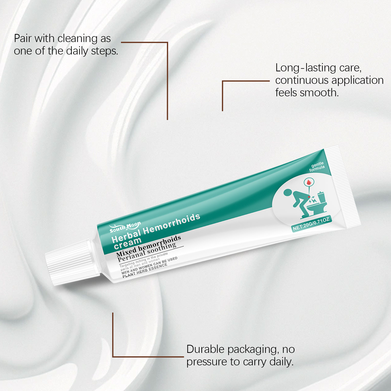 我们的身体护理膏,由薄荷叶、茶树油精心调配而成。专为减少使用后的局部不适设计。使用方法极为便捷:清洁皮肤并保持干燥,取适量本品均匀涂抹于有痔疮的私密部位,轻轻按摩至吸收。并且具有光滑的质地和光滑的应用。
