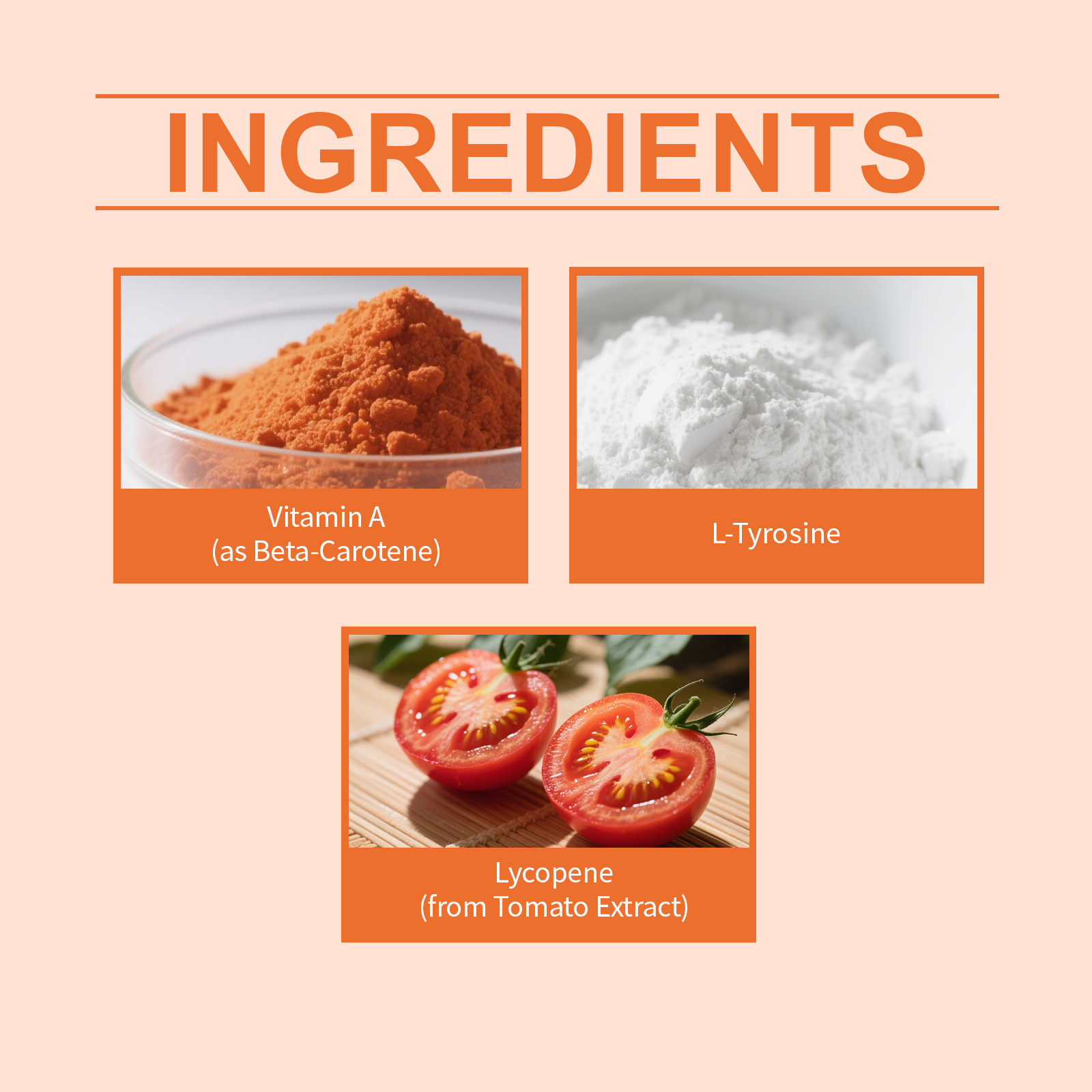 | 成分 | L-酪氨酸、番茄红素(来自番茄提取物) |