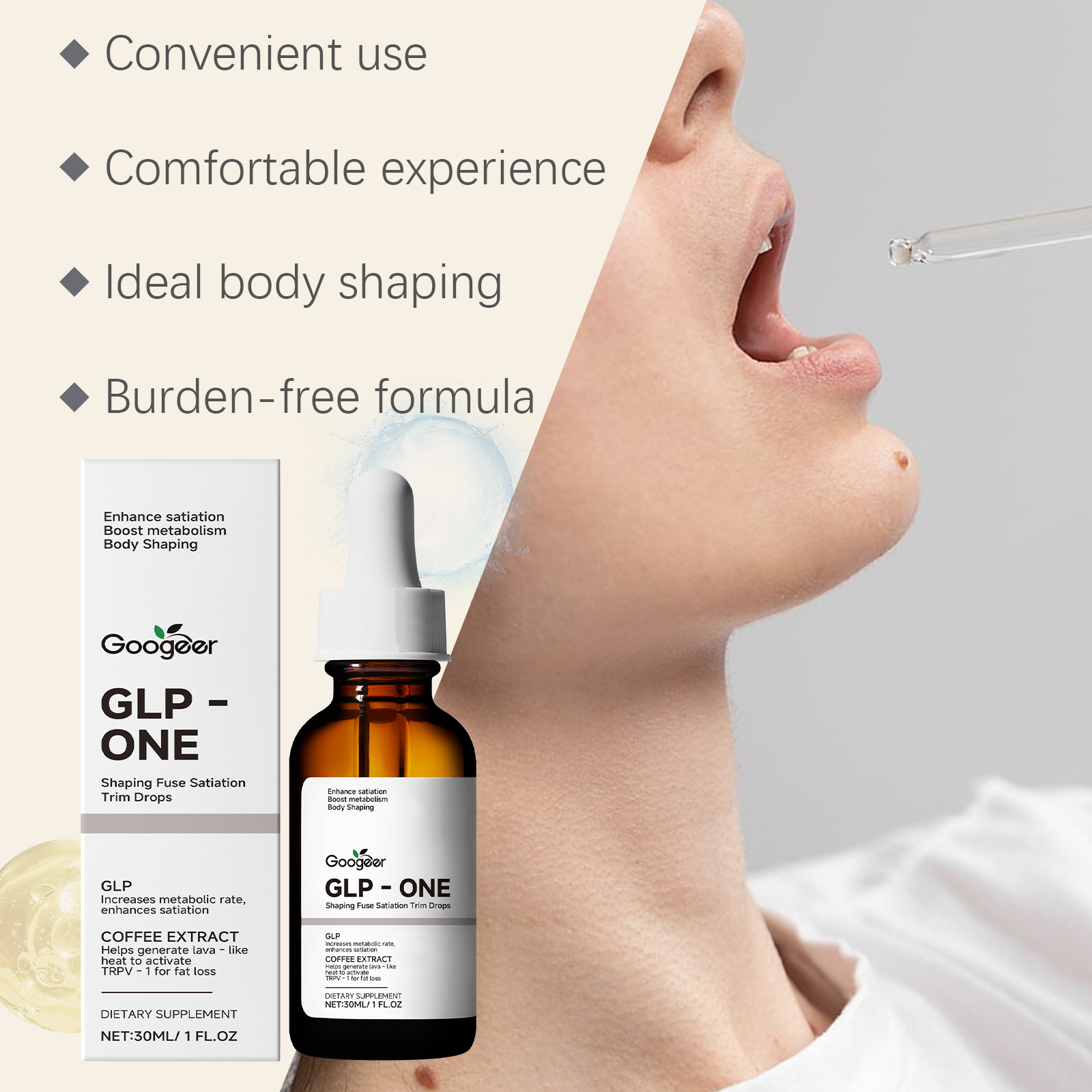 我们的修剪滴,由绿茶提取物(山茶)、绿咖啡豆提取物(阿拉比卡咖啡)精心调配而成。专为塑造理想的曲线,强大的造型设计。使用方法极为便捷:请在服用前摇匀,每次1-2滴,每天1-2次。并且它是水滴设计,随时随地轻松携带。新鲜的味道,没有不适感。