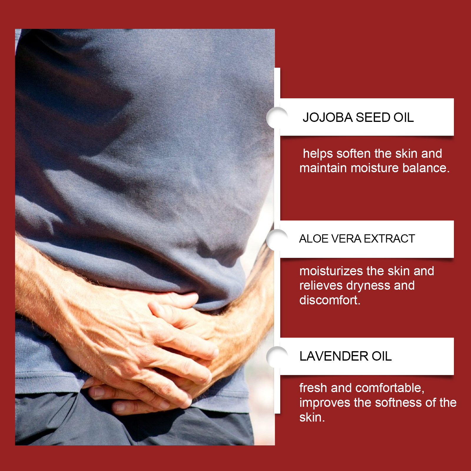 我们的男士身体护理霜,由甘油、鲸蜡硬脂醇、甘油硬脂酸酯精心调配而成。专为适用于私处,无刺激性,安全护理设计。使用方法极为便捷:清洁皮肤并保持干燥,将适量的本品均匀涂抹于目标区域。轻轻按摩以促进吸收。并且可以锁住水分,使私处长时间保持滋润和光滑,带来清新舒适的使用感受,并焕发活力。