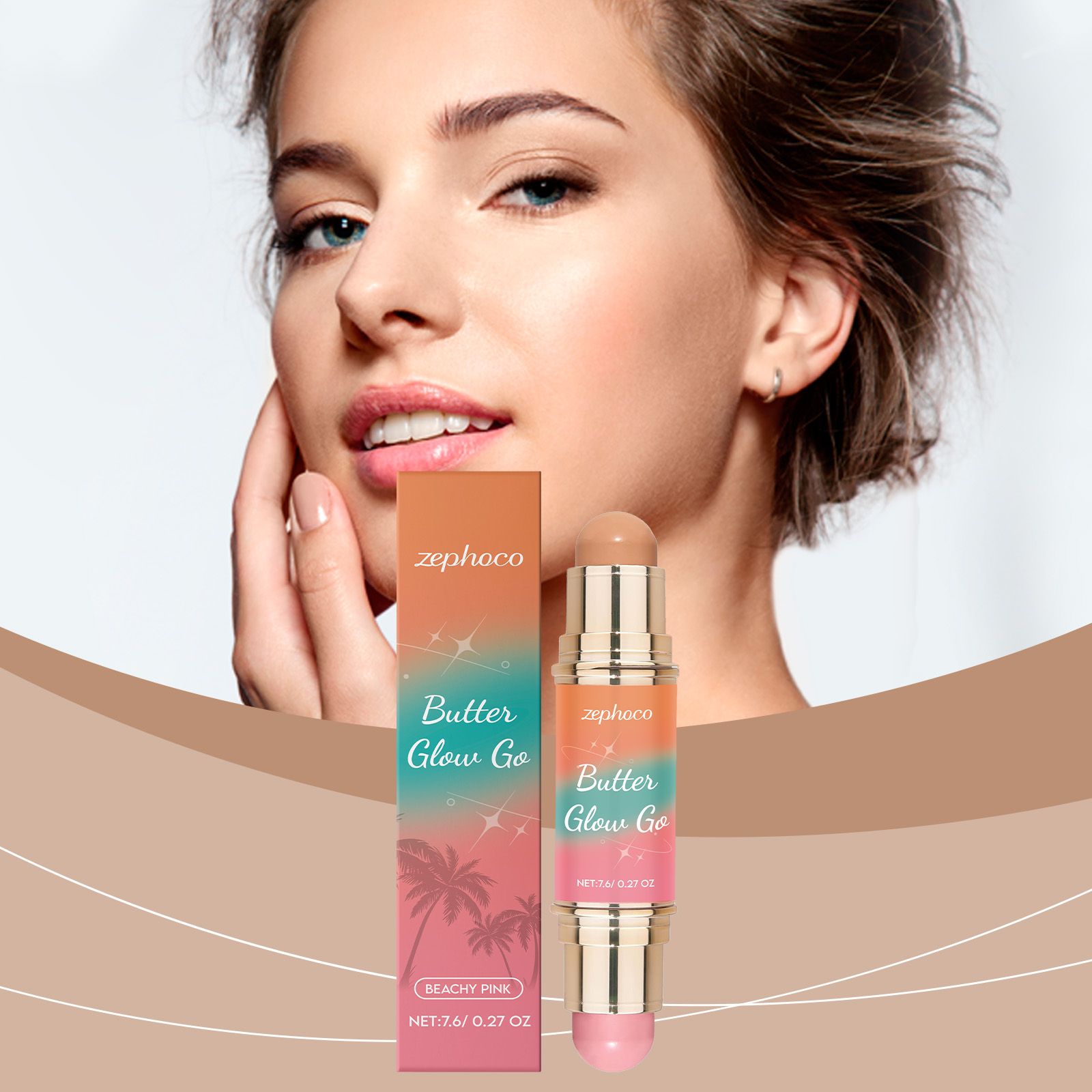 zephoco Multi-Purpose Contouring Stick (Light Brown + Light Pink) Double Head Contouring Solid Blush Mist For Portable Touch Up