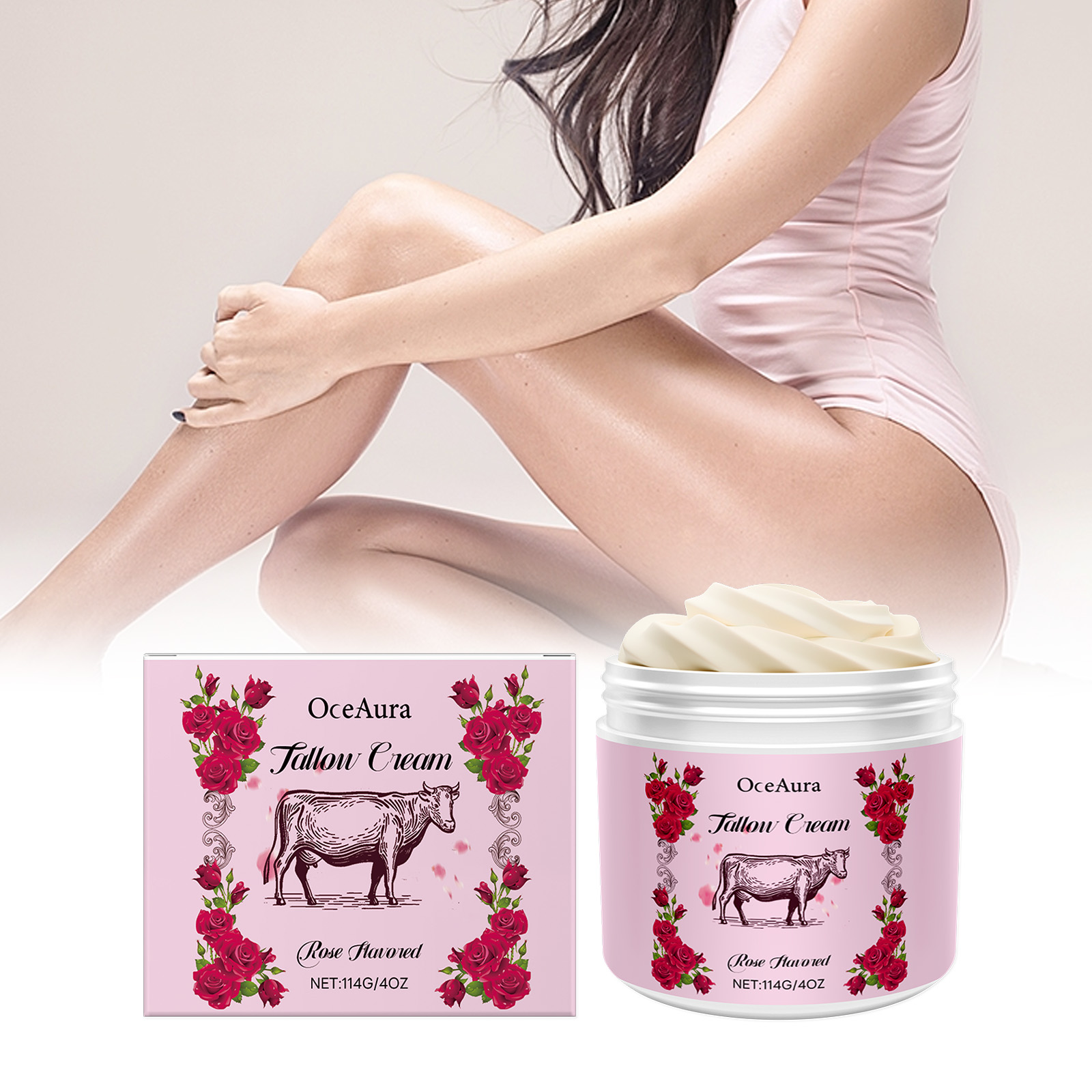 OceAura Rose Tallow Moisturizing Body Cream, Gentle Care Hydrating Soft Skin Dry Dull Nourishing Body Lotion