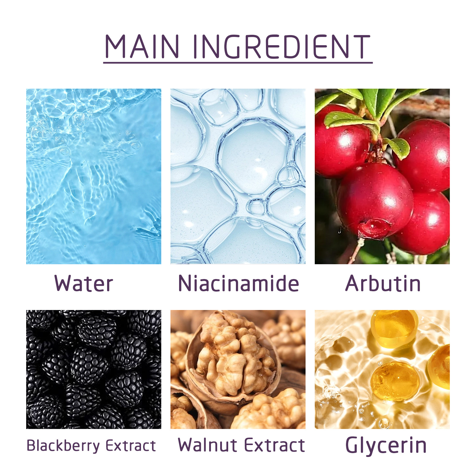 | 成分 | 烟酰胺、熊果苷、黑莓提取物 |