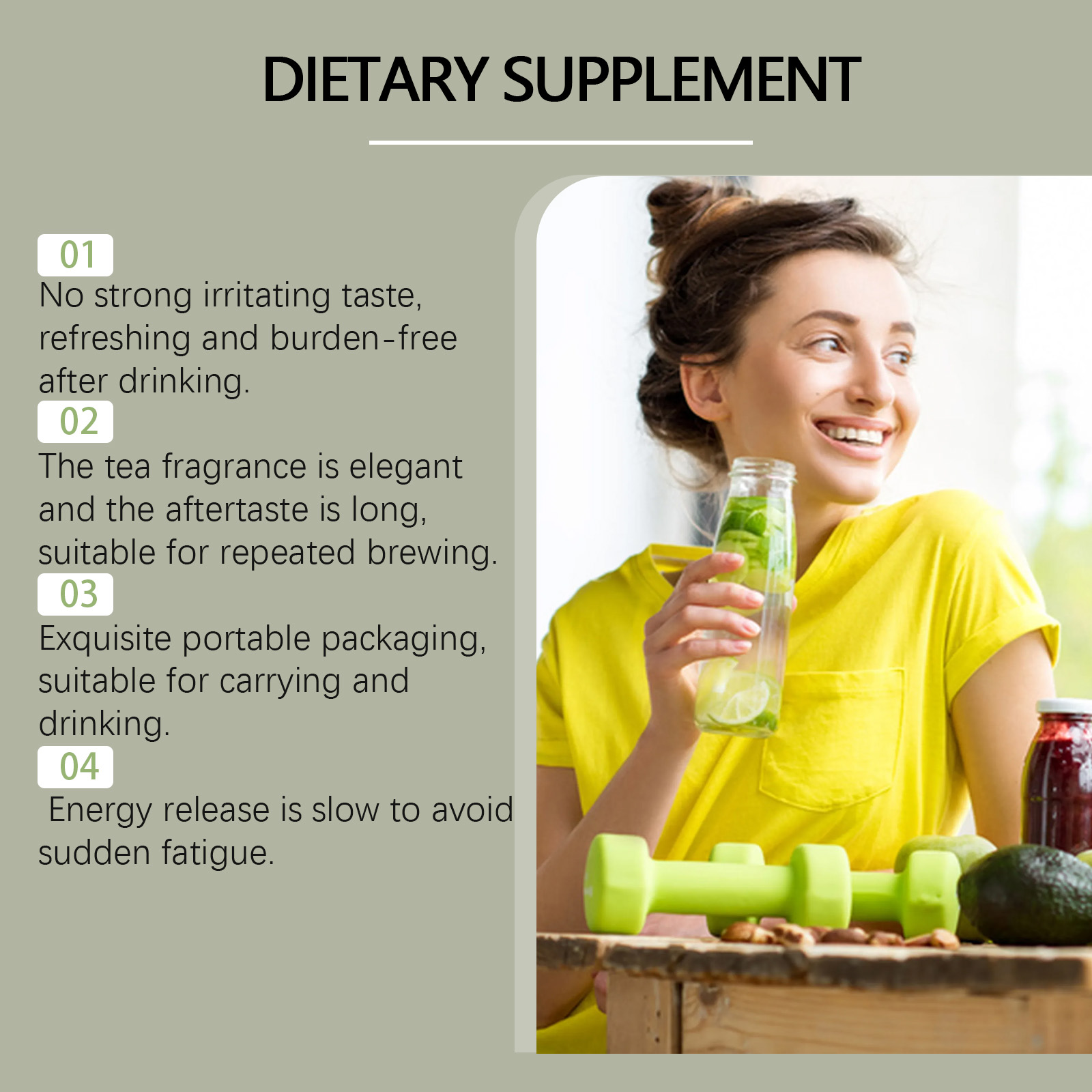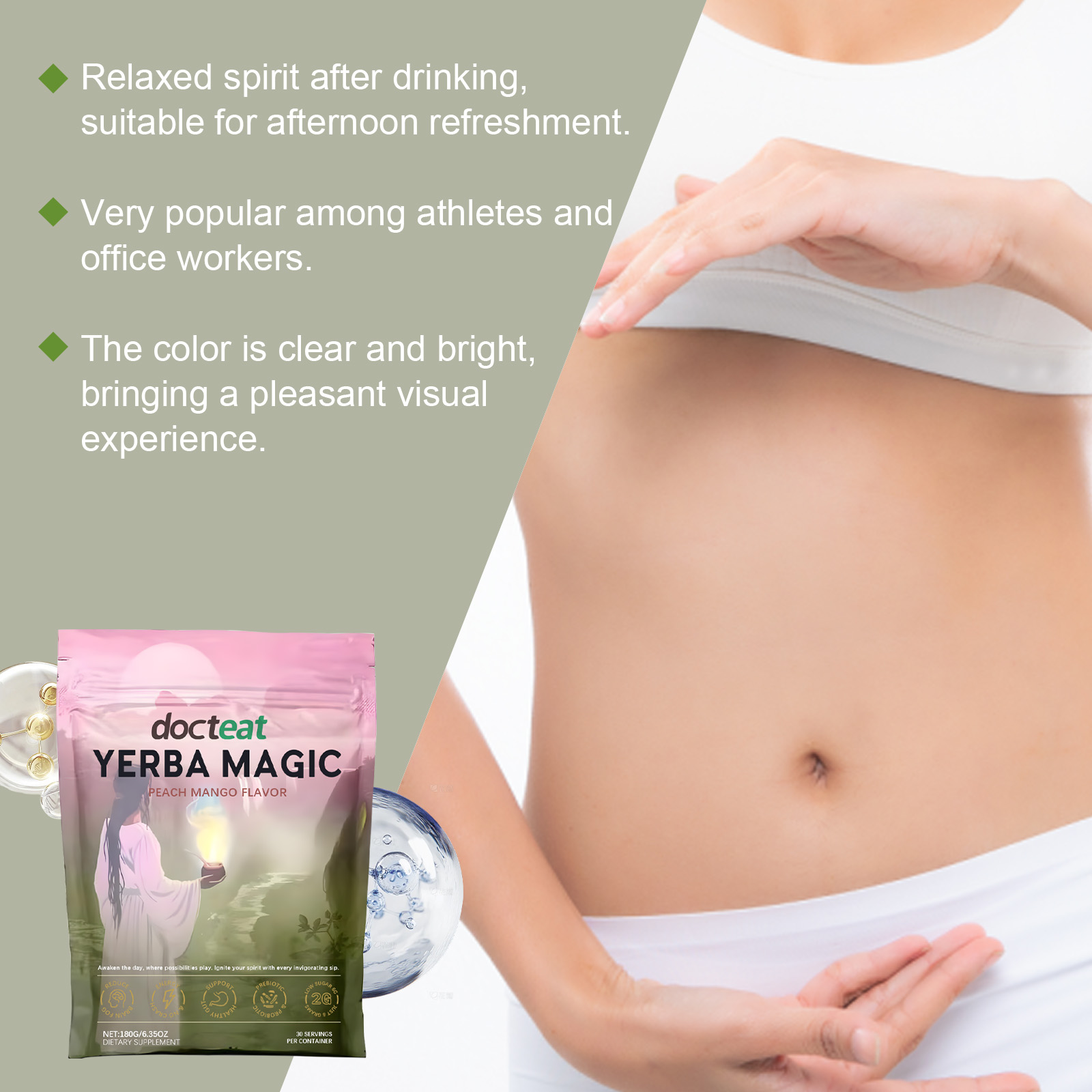 我们的马黛茶,由混合纤维,猴头菇精心调配而成。专为轻松控制进食节奏,减少不必要的摄入设计。使用方法极为便捷:每勺6克,每天1勺,浸泡在水中并服用。并且可以与早午餐搭配,增加饱腹感并延长食用时间。
