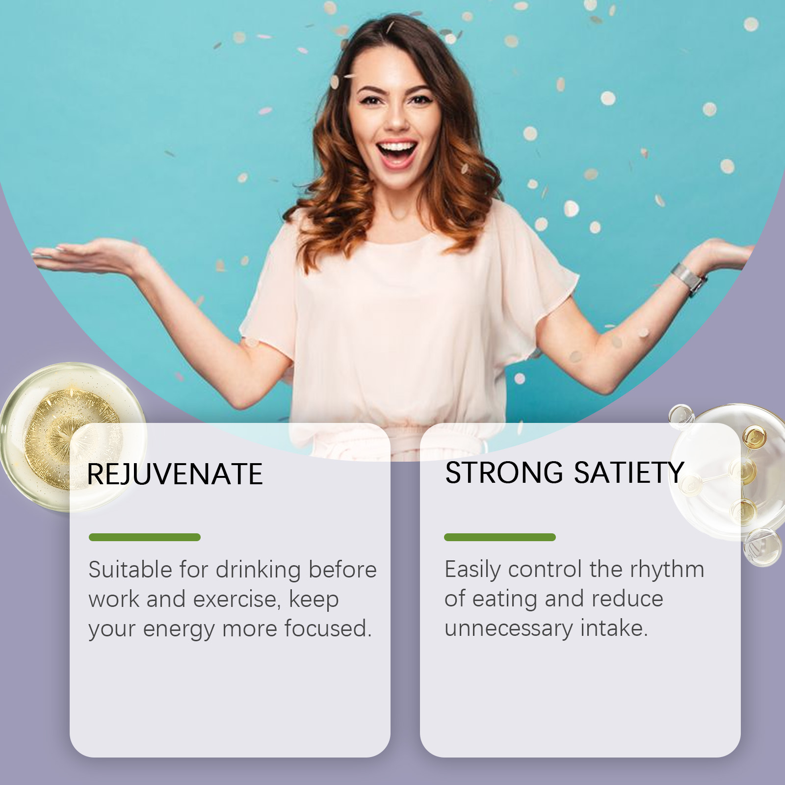 我们的马黛茶,由二氧化硅,甜菊叶提取物,甜菊糖苷精心调配而成。专为轻松控制进食节奏,减少不必要的摄入设计。使用方法极为便捷:每勺6克,每天1勺,浸泡在水中并服用。并且可以与早午餐搭配,增加饱腹感并延长食用时间。