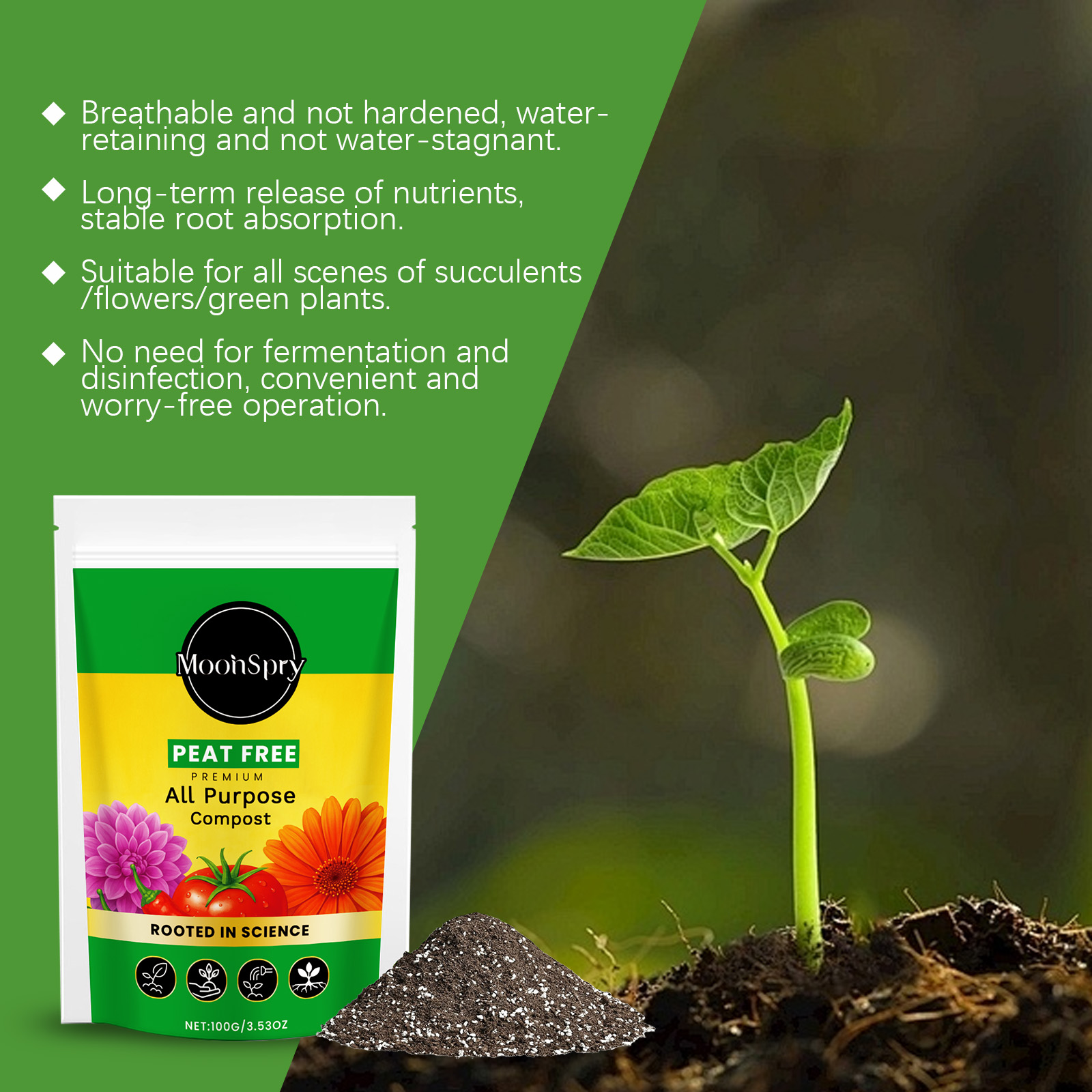MoonSpry Potted Nutrient Soil, Universal Type Of Soil For Indoor Green Plants And Succulents, Lightweight And Breathable