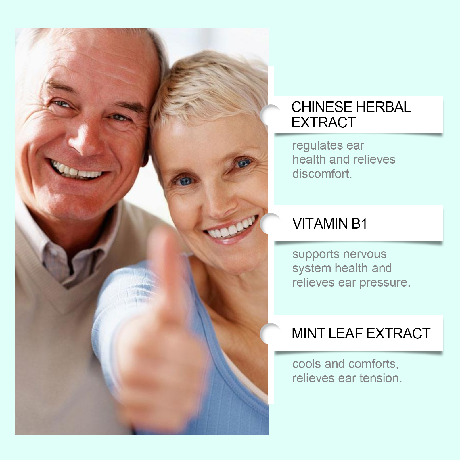 我们的耳部护理滴剂,由中药提取物、葡萄糖酸内脂、维生素b1精心调配而成。专为减少耳部紧致和刺激,恢复平静。易于使用,快速吸收,舒适体验,温和配方,适合日常使用设计。使用方法极为便捷:请在服用前摇匀,每次1-2滴,每天1-2次。并且可以缓解耳朵的嗡嗡声和不适感,随时随地都可以使用,方便舒适,帮助减少外部噪音提高内心平静。专注于耳部健康,恢复耳部舒适。