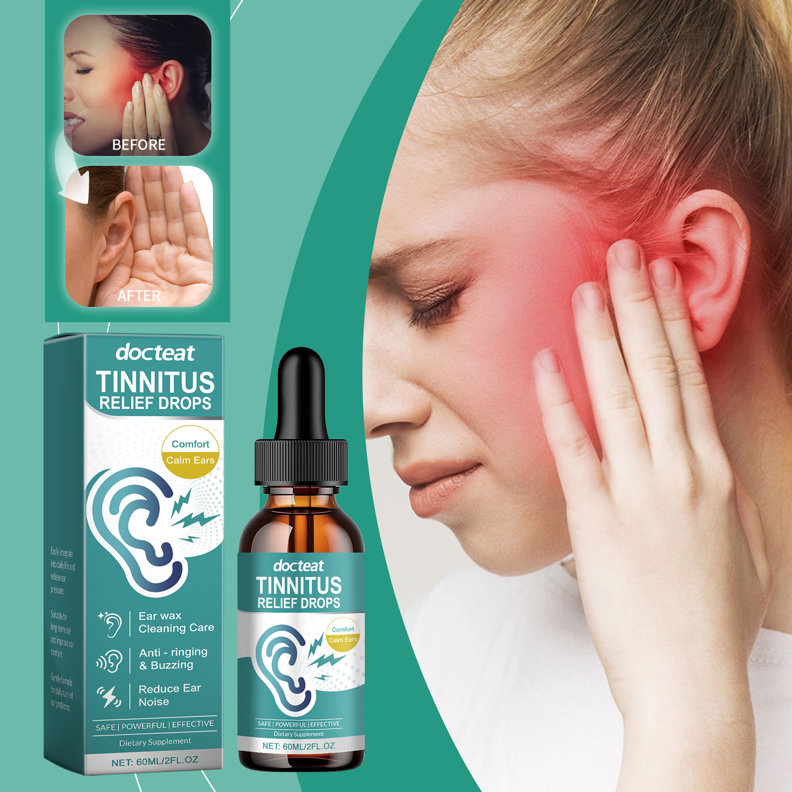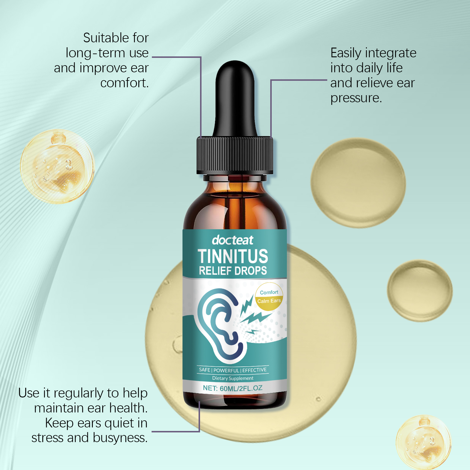 Docteat Ear Care Drops, Soothe Ear Noise, Protect Ear Health And Reduce Noise