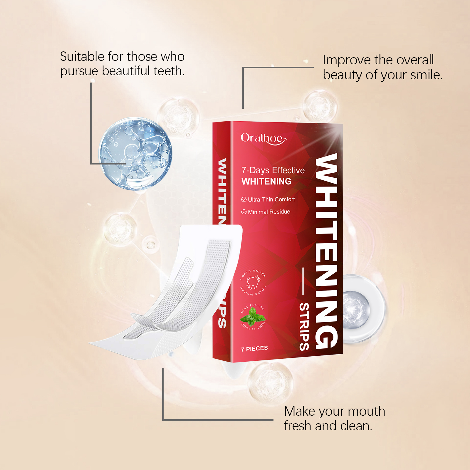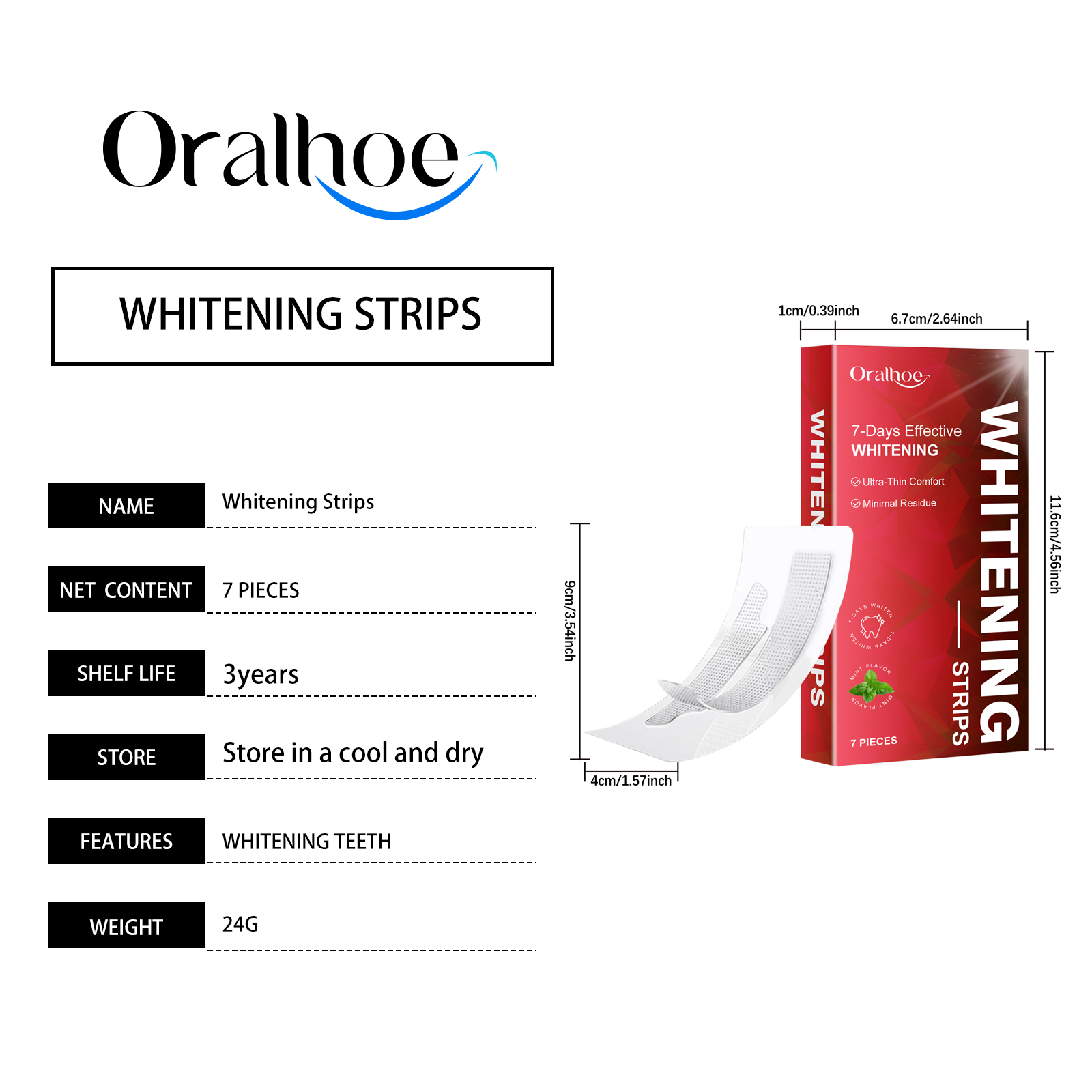 Oralhoe Teeth Cleaning Strips, Use Gentle Ingredients To Clean Tooth Dirt, Enhance Tooth Brightness And Remove Stains