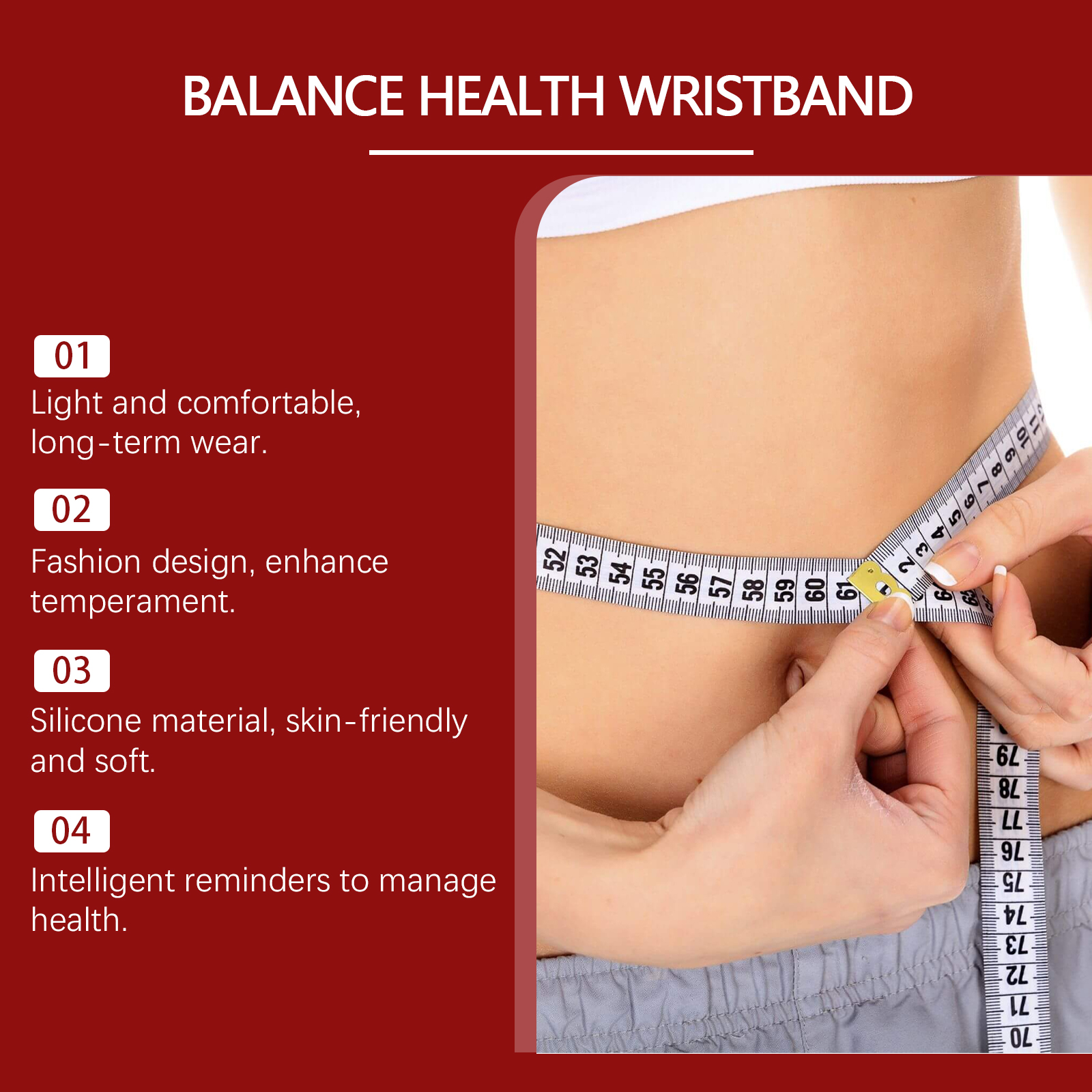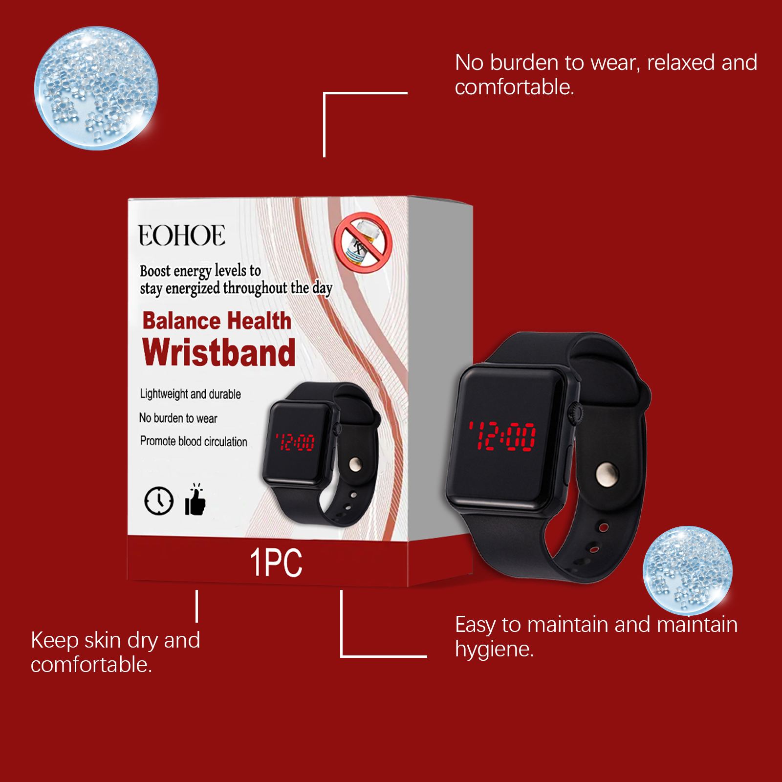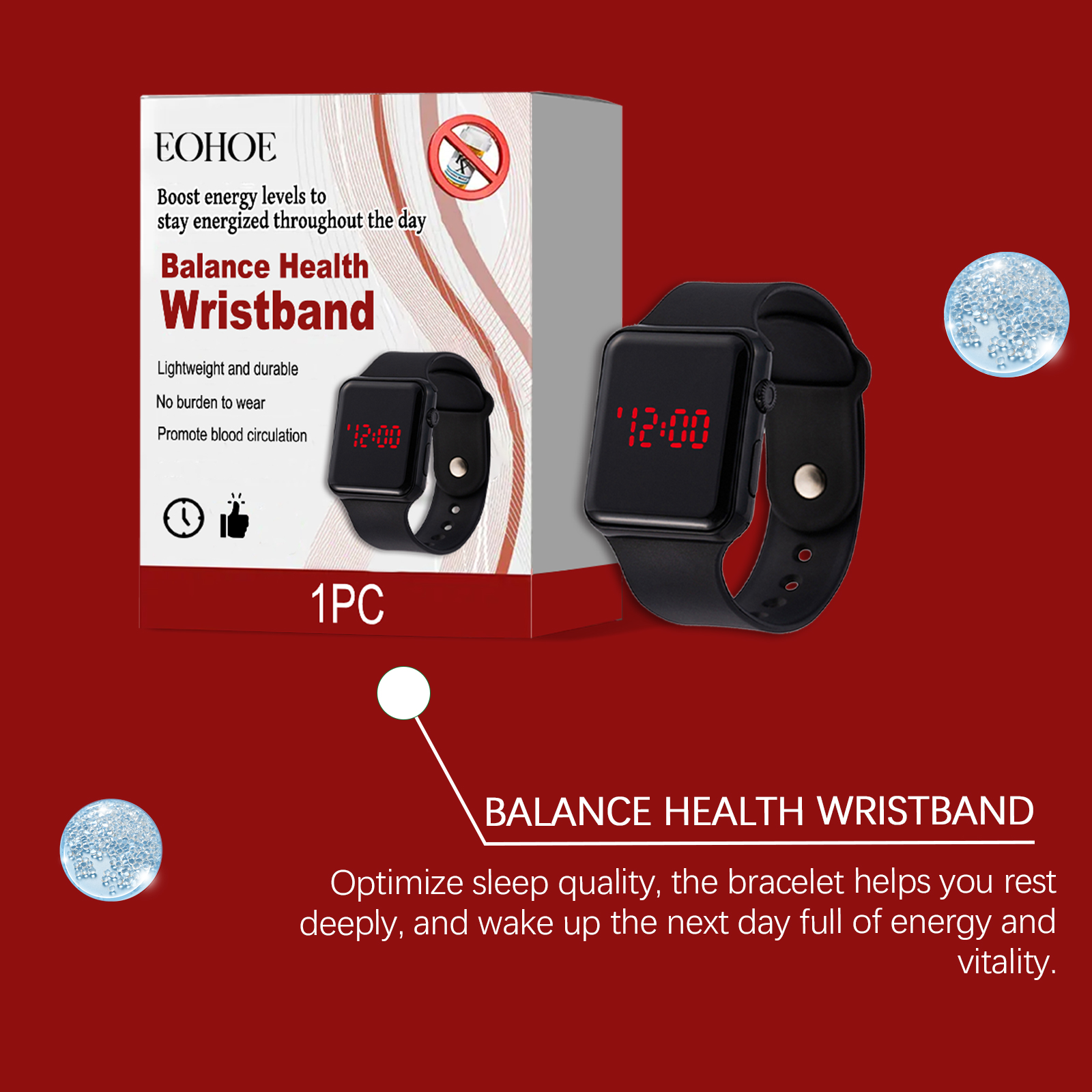 我们的身体平衡护理手表,由硅胶精心调配而成。专为帮助平衡身体的循环,有效减少日常疲劳,并恢复身体和精神的活力设计。使用方法极为便捷:将产品戴在手腕上,并调整到舒适的位置。并且它长时间穿着没有任何压迫感。简单而优雅,适合各种场合。