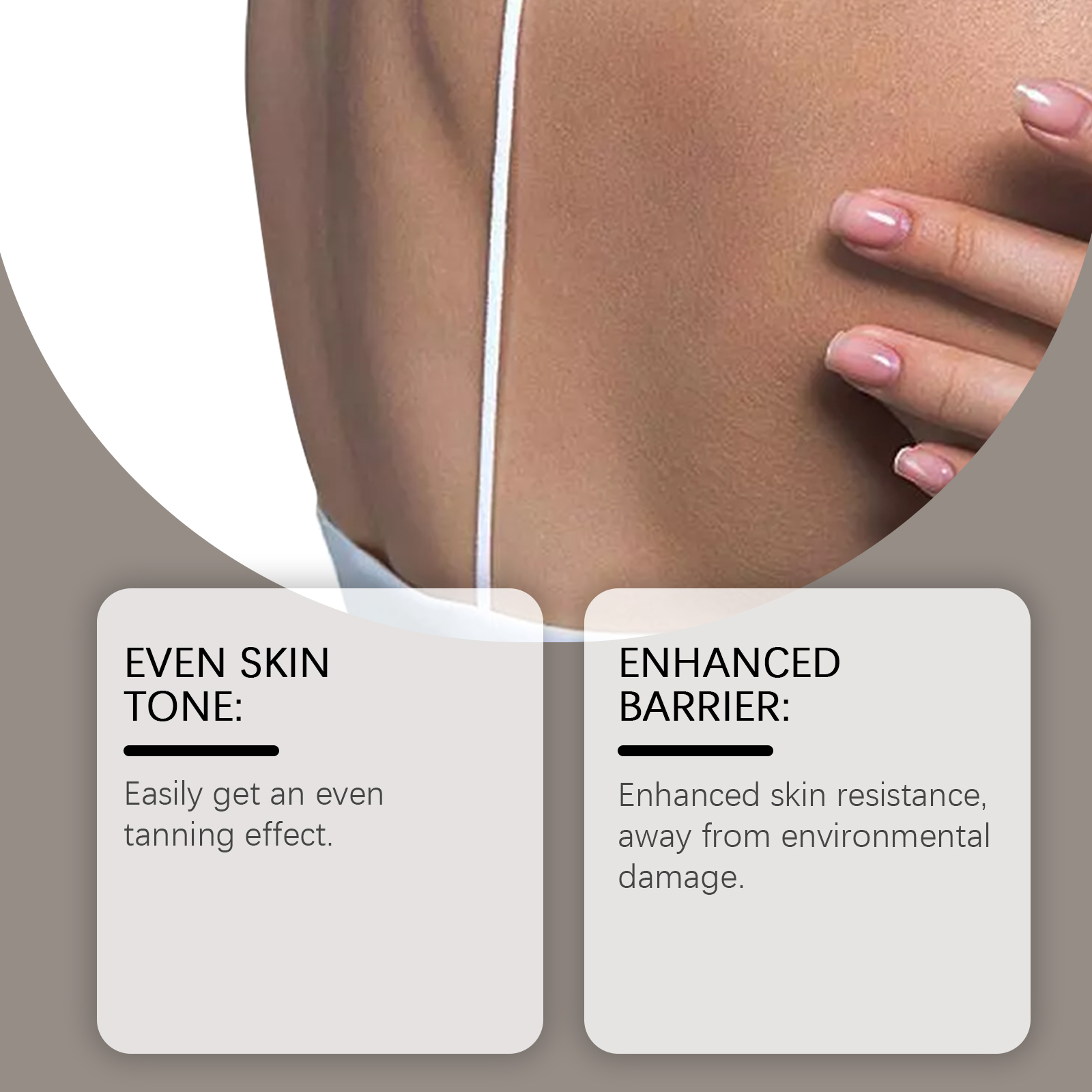 我们的美黑胶囊(入口),由胡芦巴(种子)、番茄红素、虾青素精心调配而成。专为轻松获得均匀的晒黑效果设计。使用方法极为便捷:每天服用两粒胶囊。并且可以增强皮肤抵抗力,远离环境损害。