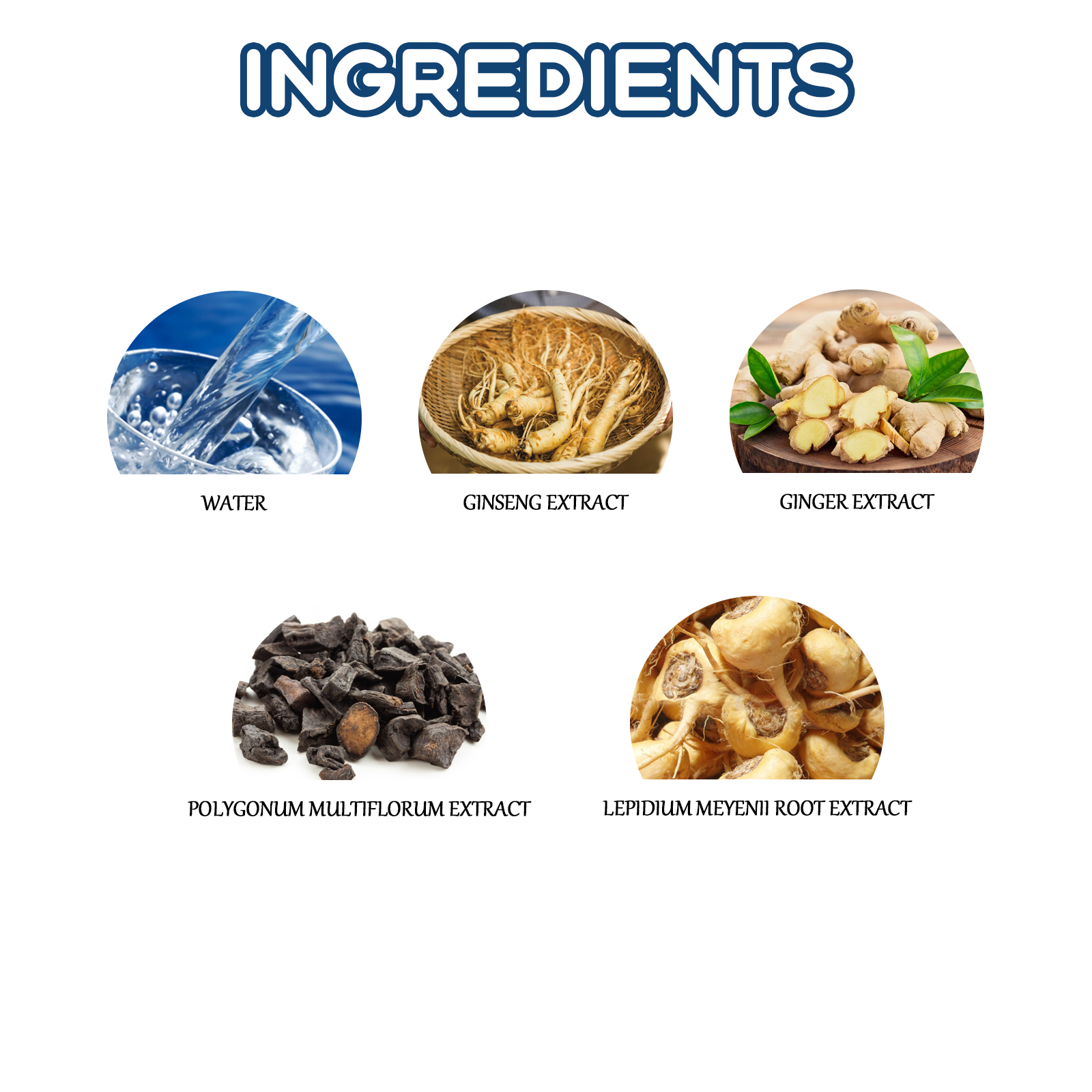 | 成分 | 人参提取物、生姜提取物、何首乌提取物 |
