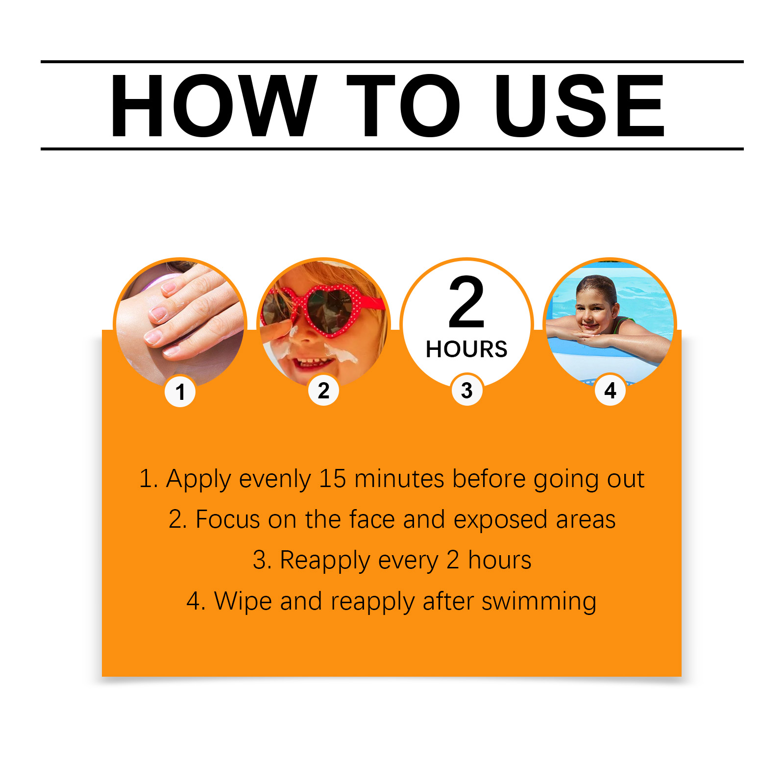 我们的儿童防护霜,由甘油、鲸蜡硬脂醇、二氧化钛精心调配而成。专为舒缓敏感肌肤,减少外部刺激,温和配方适合儿童娇嫩肌肤设计。使用方法极为便捷:1.外出前15分钟均匀涂抹。2.专注于面部和暴露区域。3.每2小时重新涂抹一次。4.游泳后擦拭并重新涂抹。并且可以针对UVA/UVB损伤的广谱保护,轻盈质地,快速成膜,清新不粘腻。