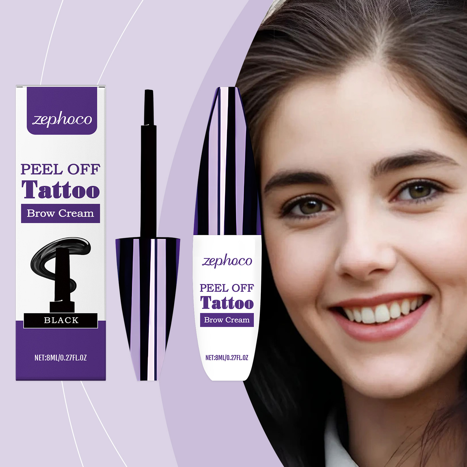 zephoco Tear-Off Liquid Eyebrow Pencil, Shapes Eyebrows Naturally, Smoothly And Lastingly. Black Hair Flow Touch Eyebrow Pencil